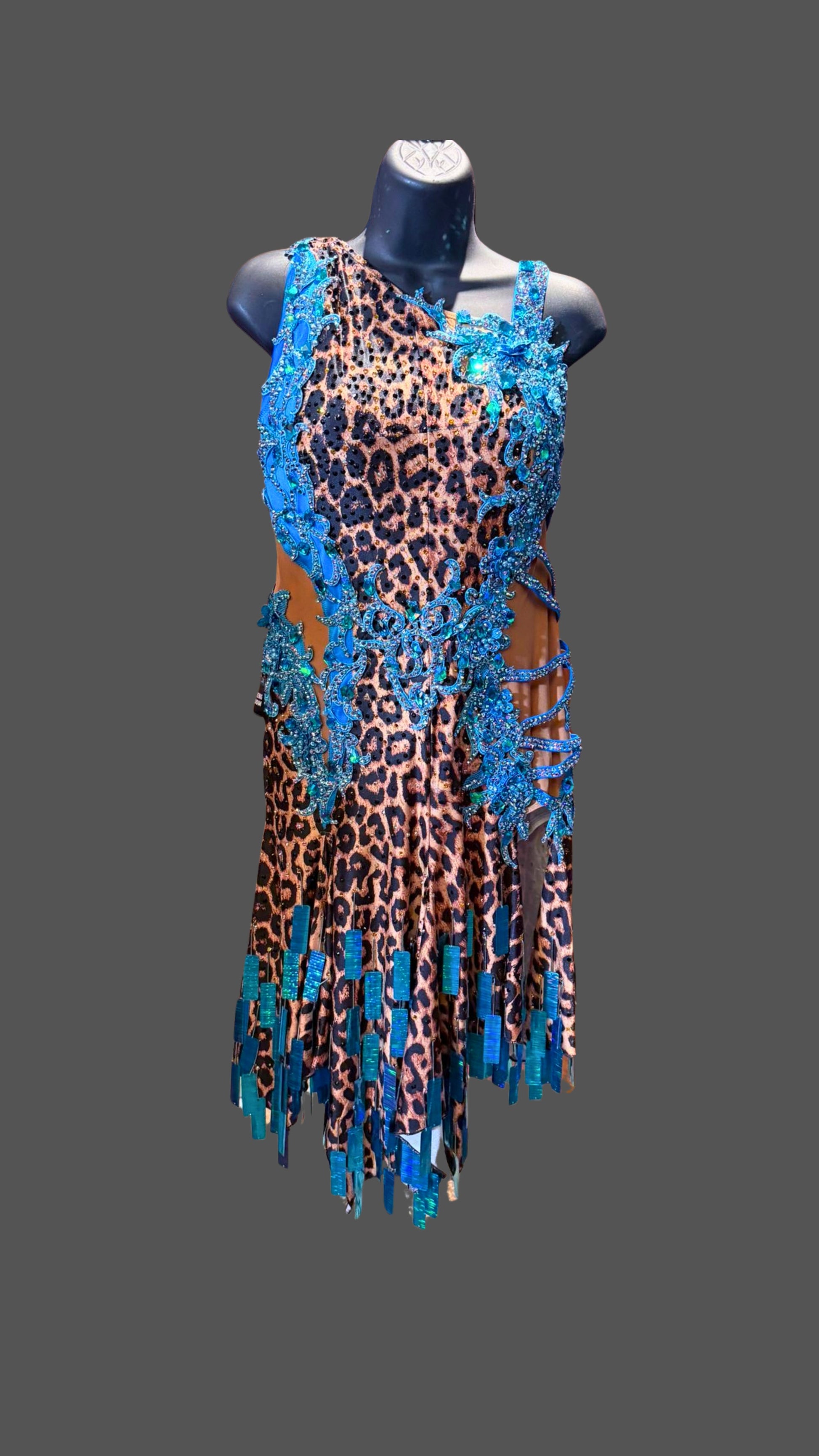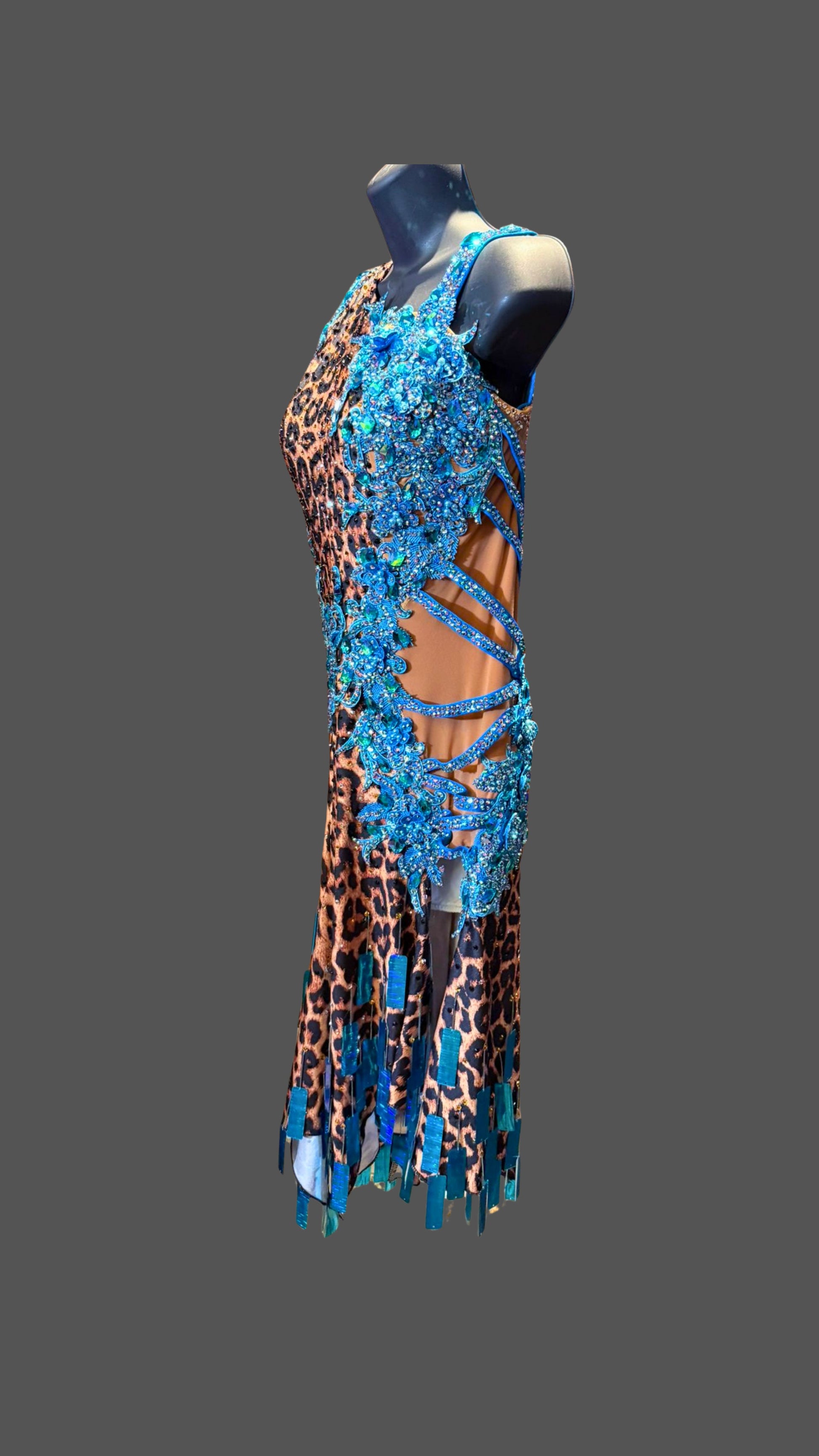 Sexy Fun Leopard Blue Latin Dress