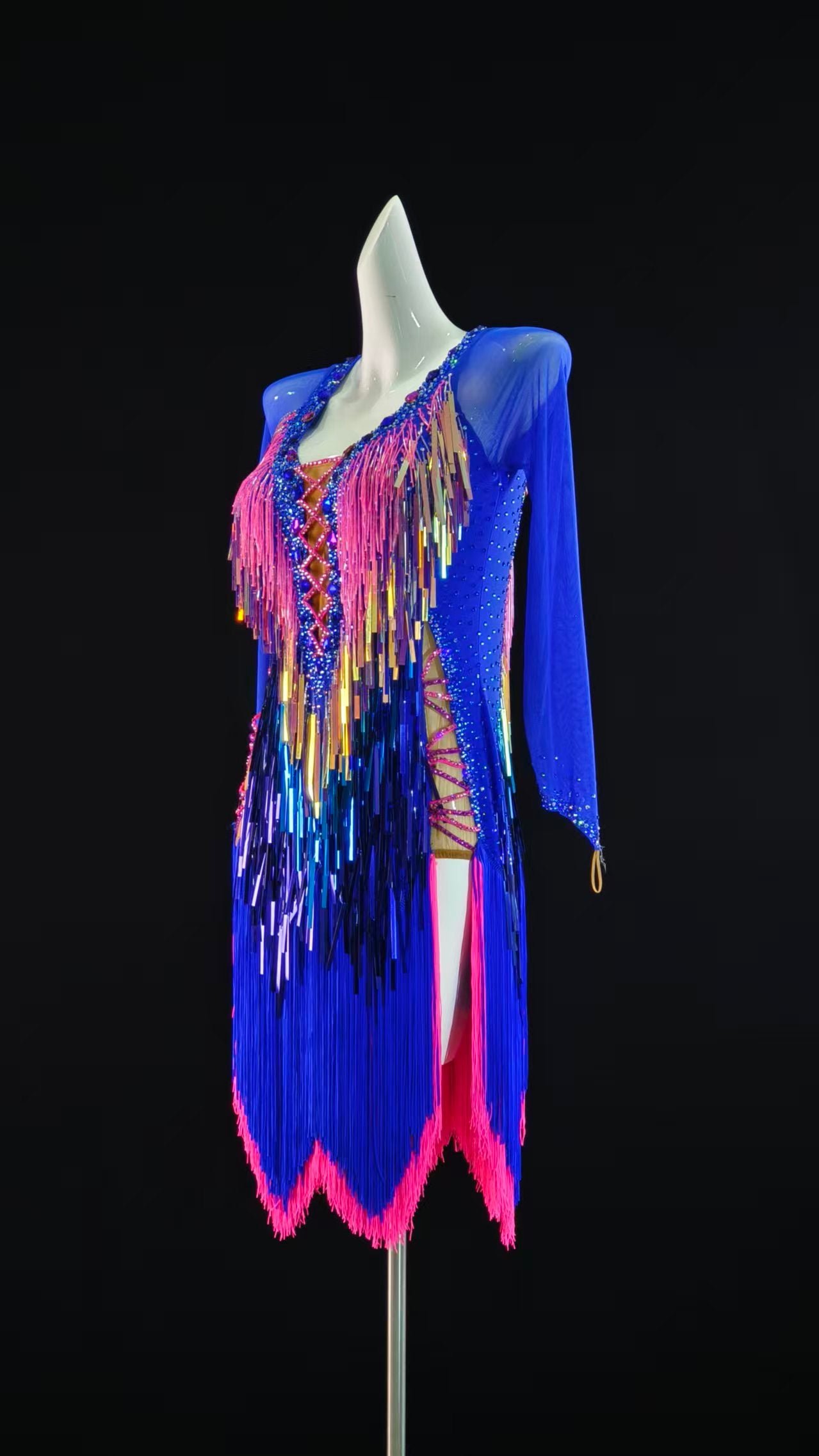 Sexy and Elegant Flakes Fringe Latin Dress with Long Sleeves