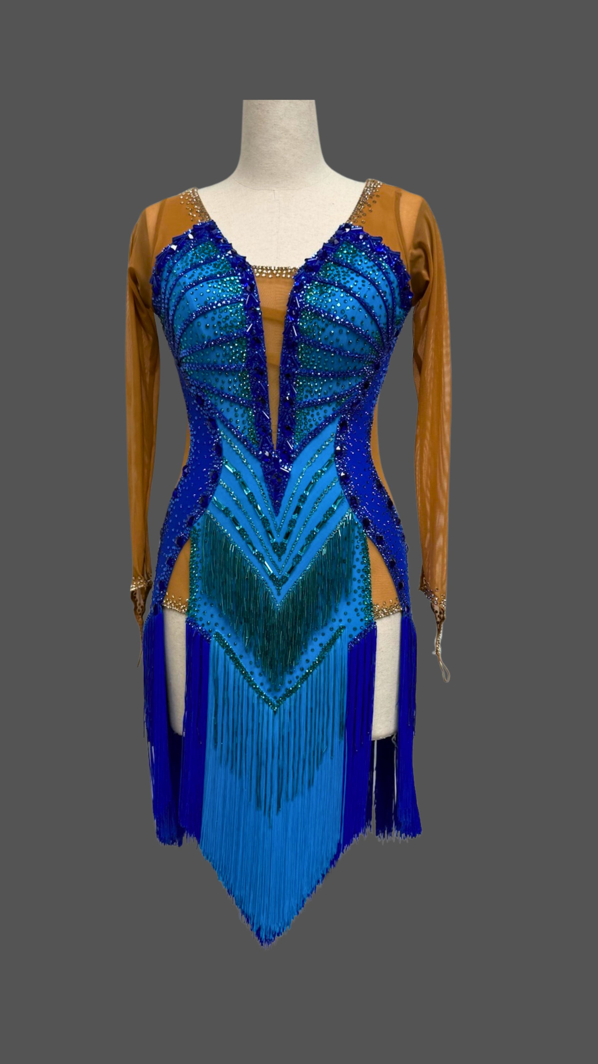 Sexy and Fun Lime Green Stoned Cloth Fringe Latin Dress