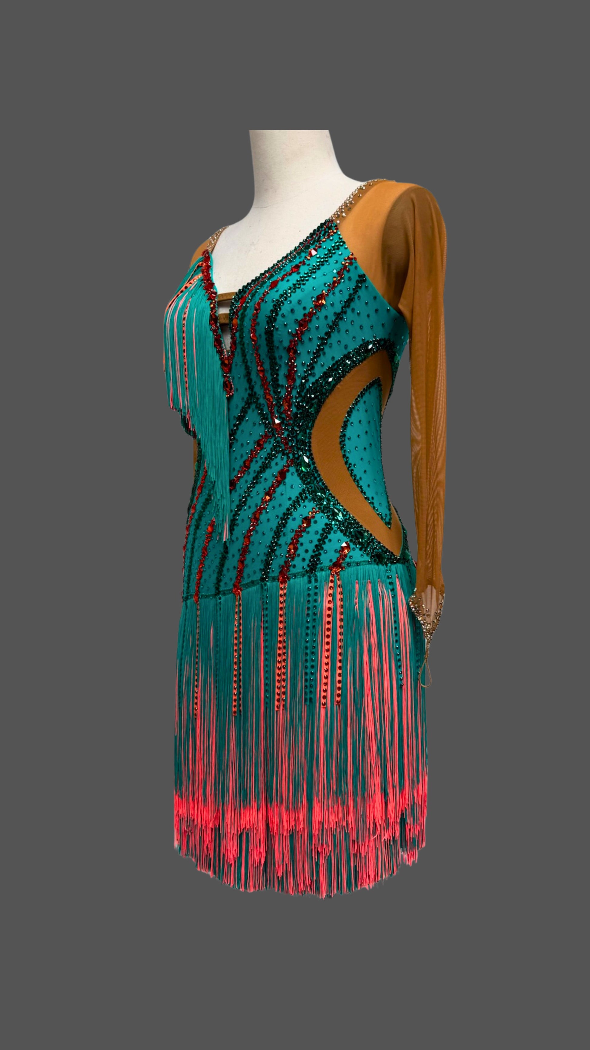 Sexy and Fun Lime Green Stoned Cloth Fringe Latin Dress