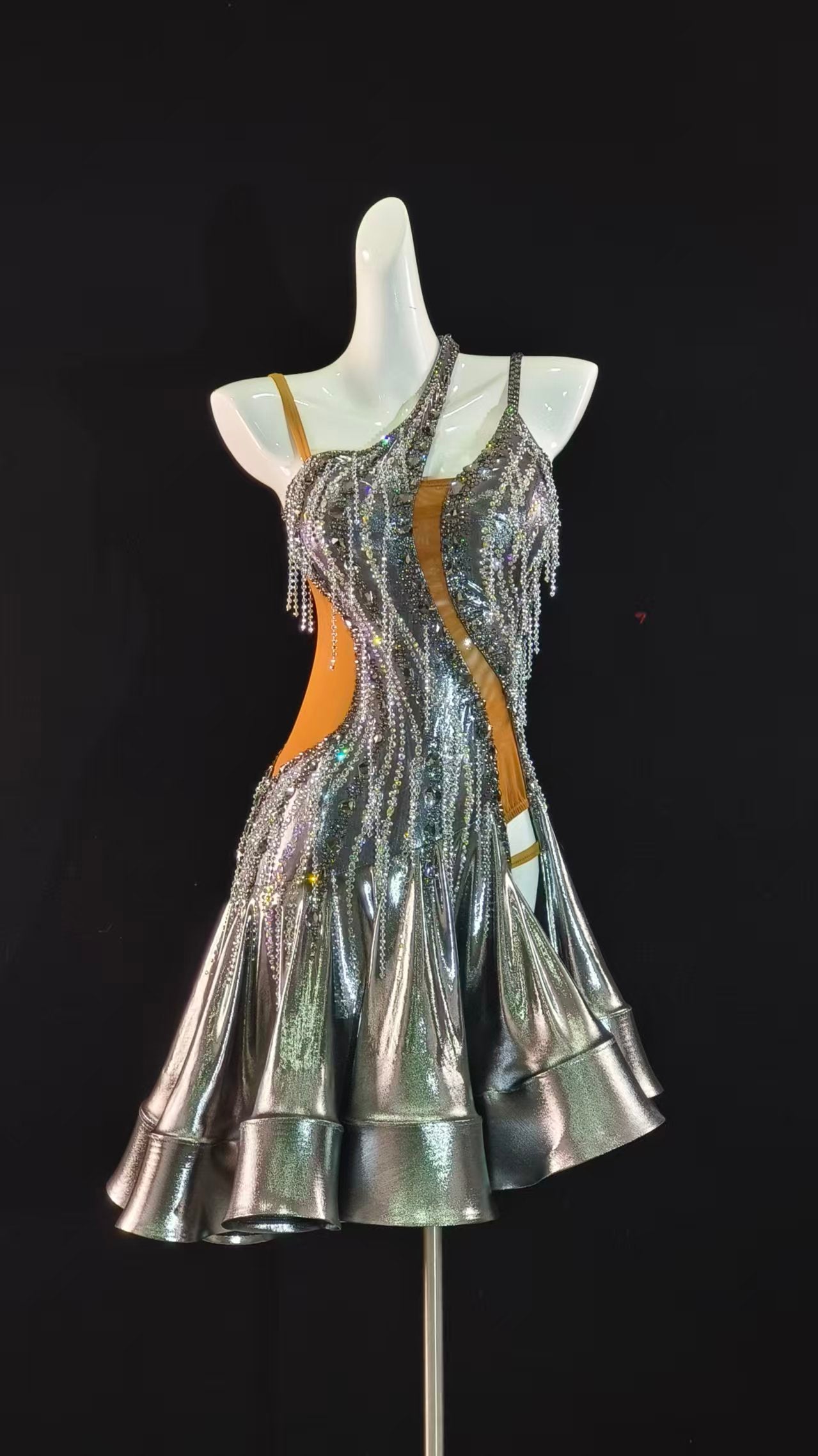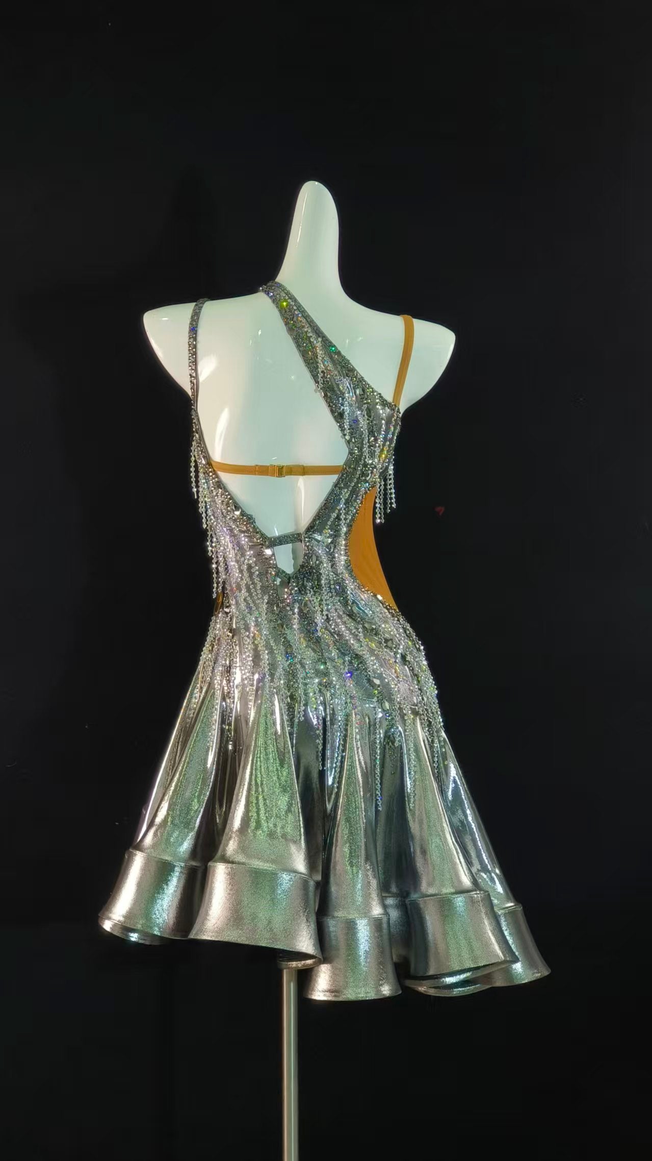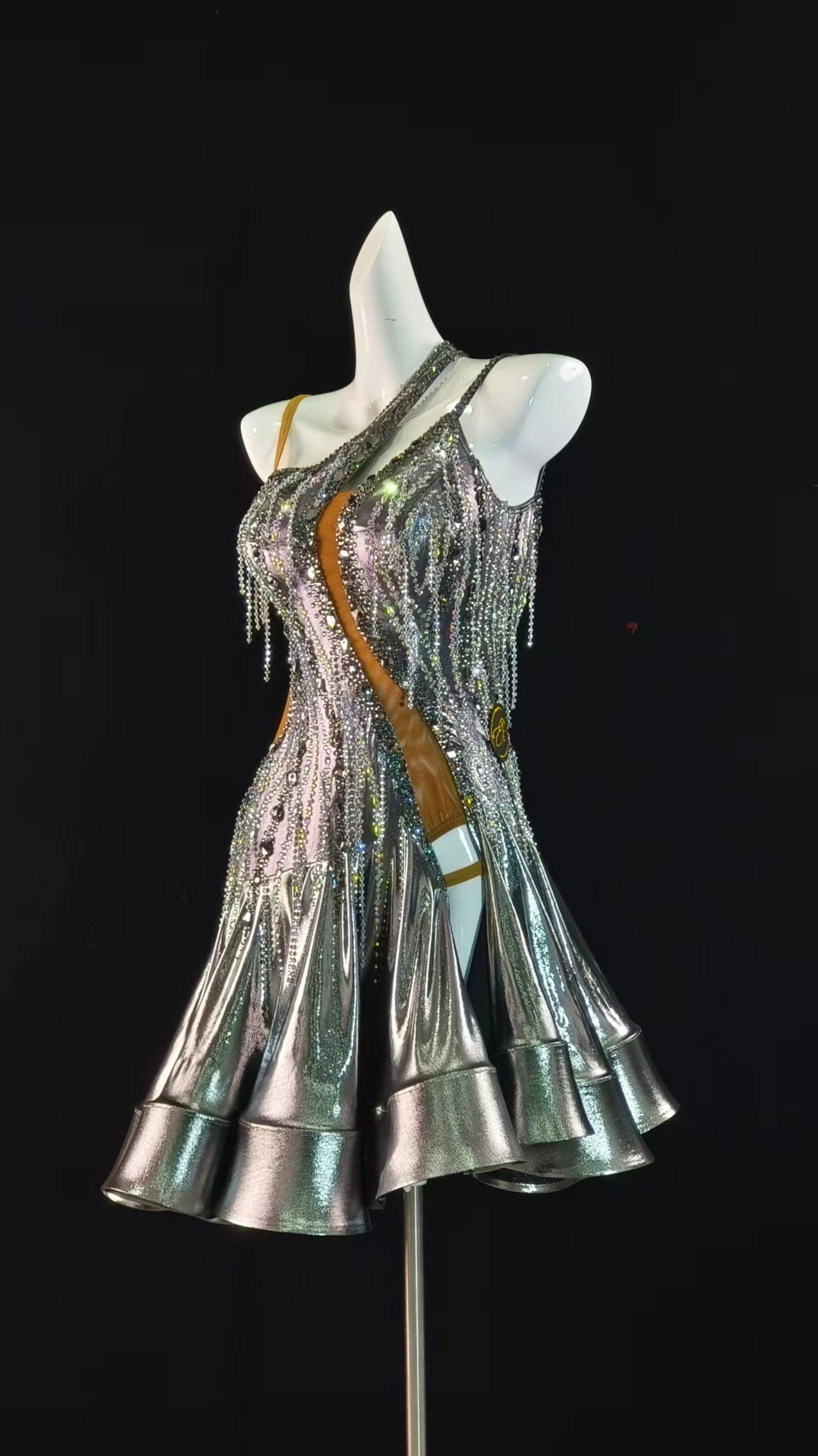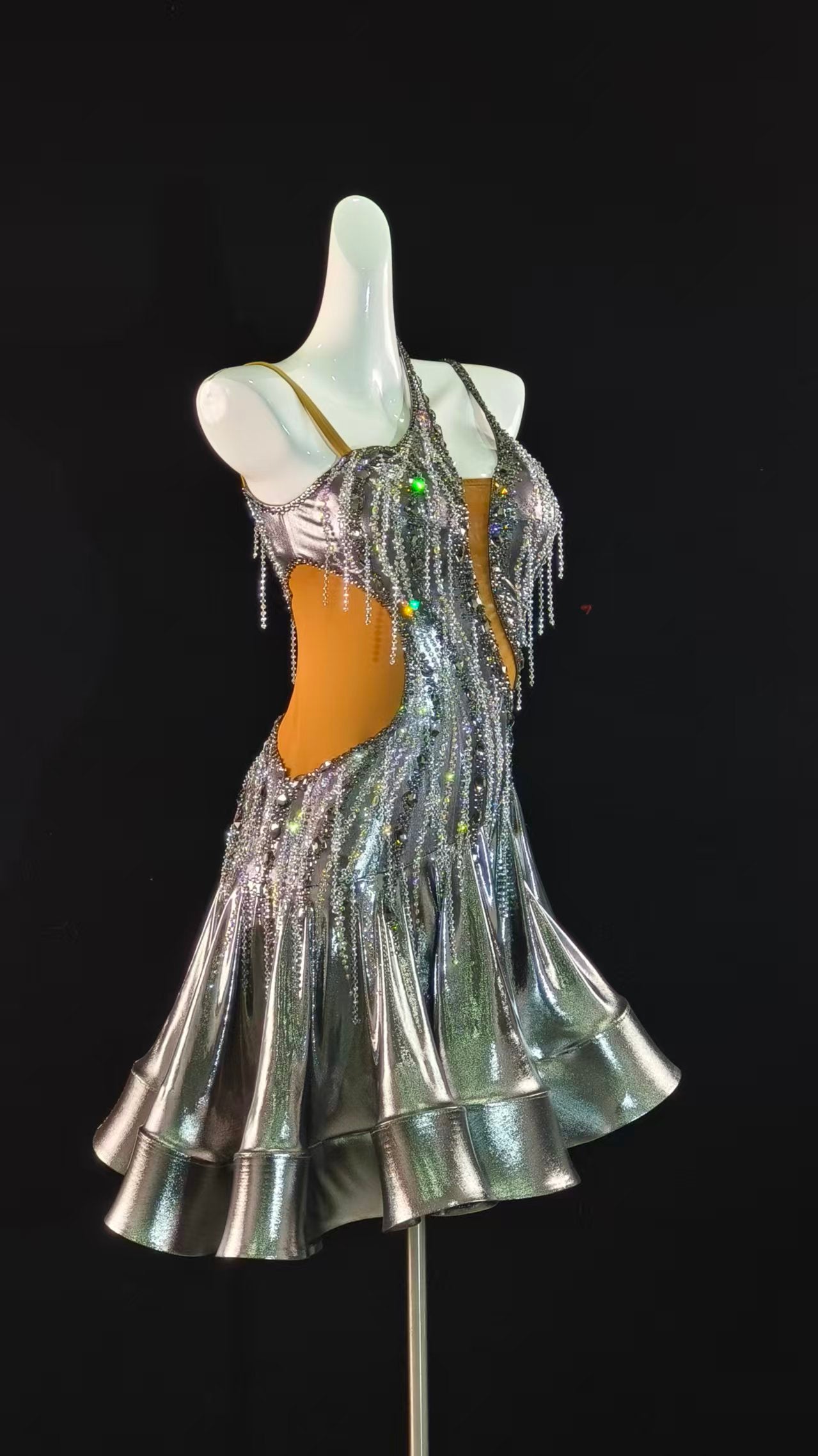 Sexy and Fun Metallic Silver Ruffle Latin Dress