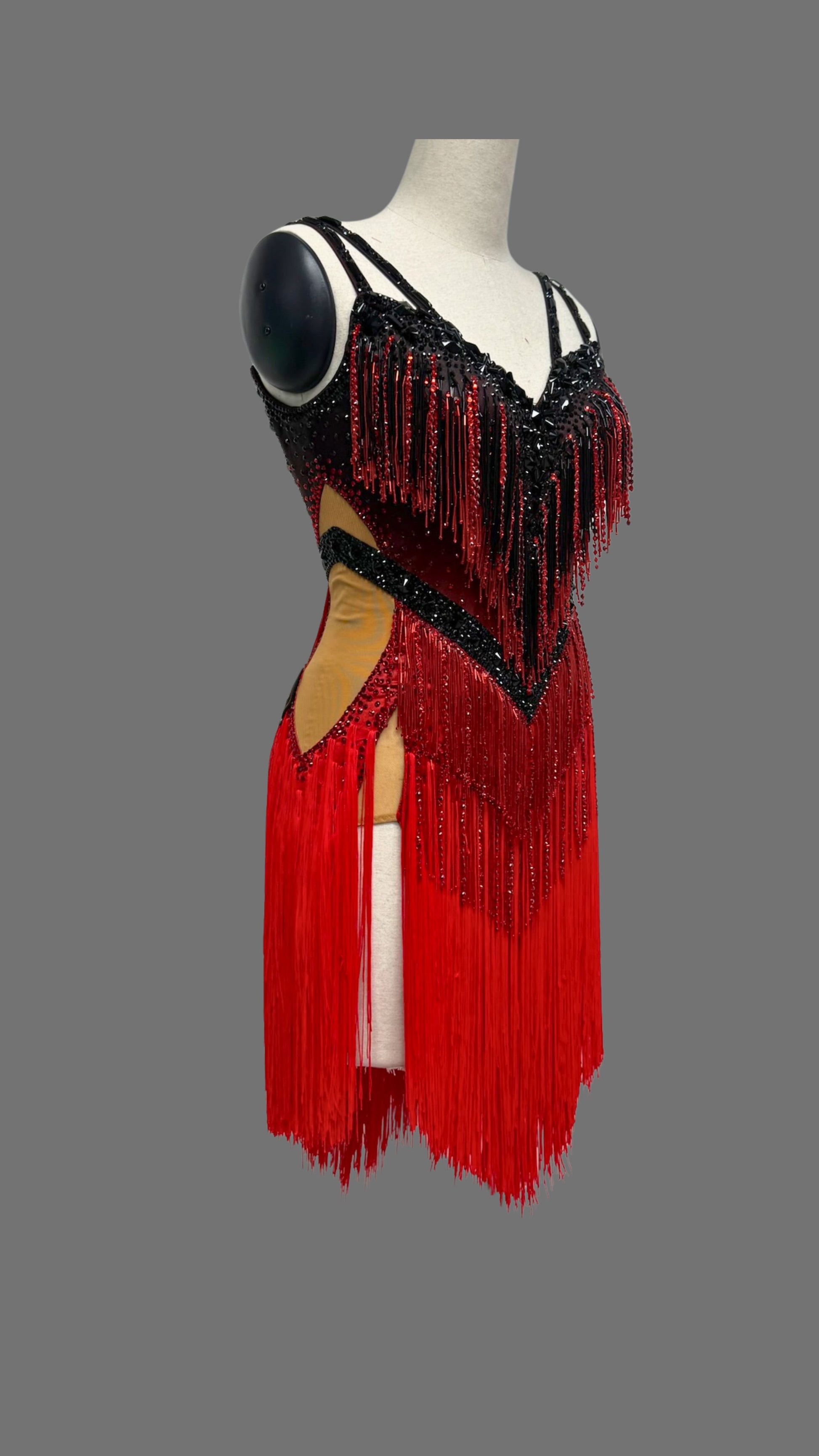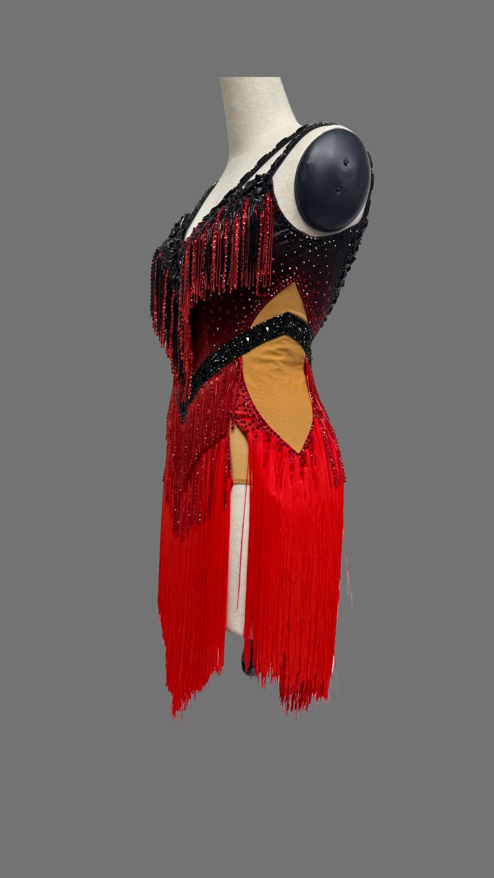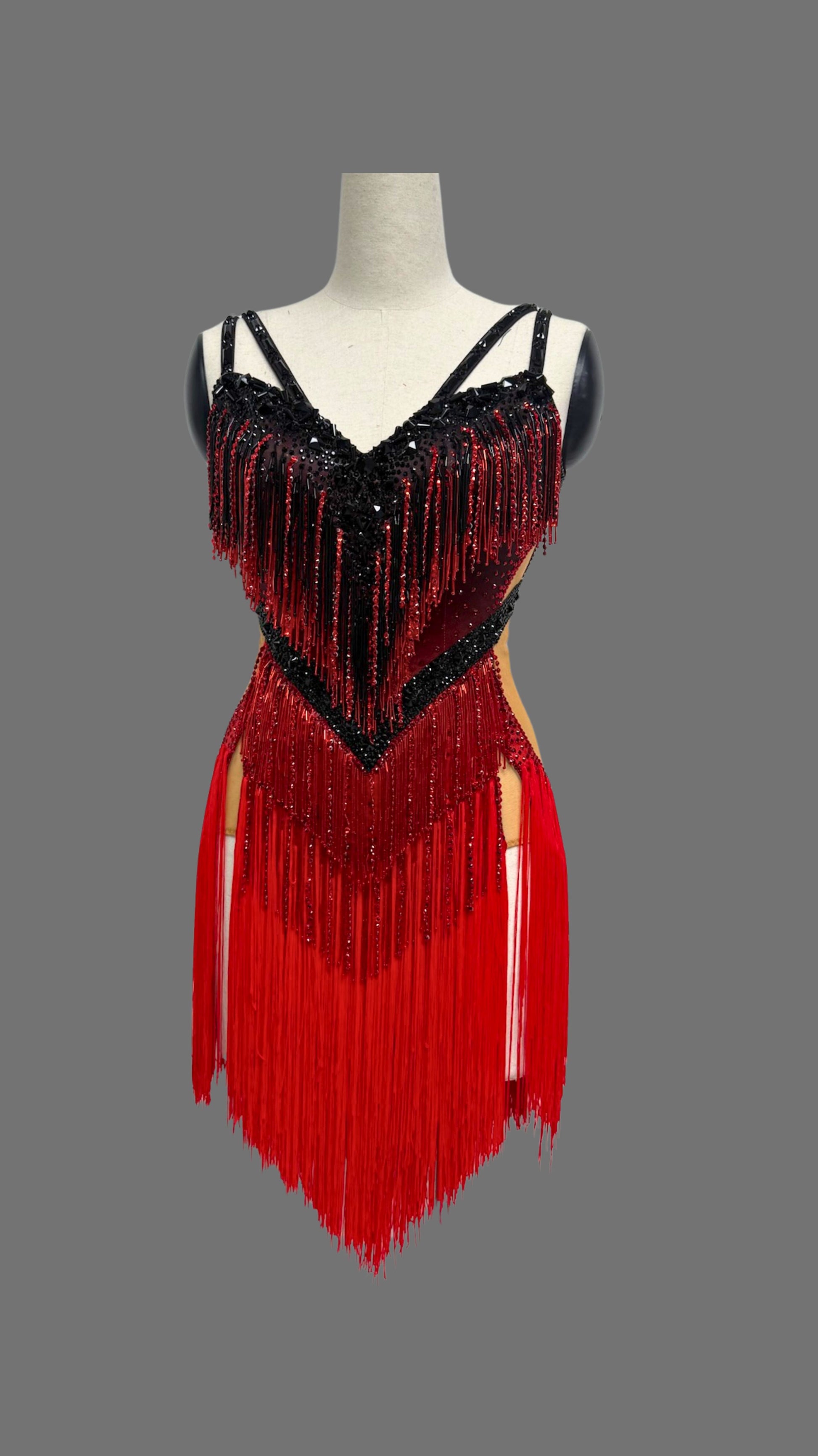 Sexy and Fun Red & Black Stoned Cloth Fringe Latin Dress