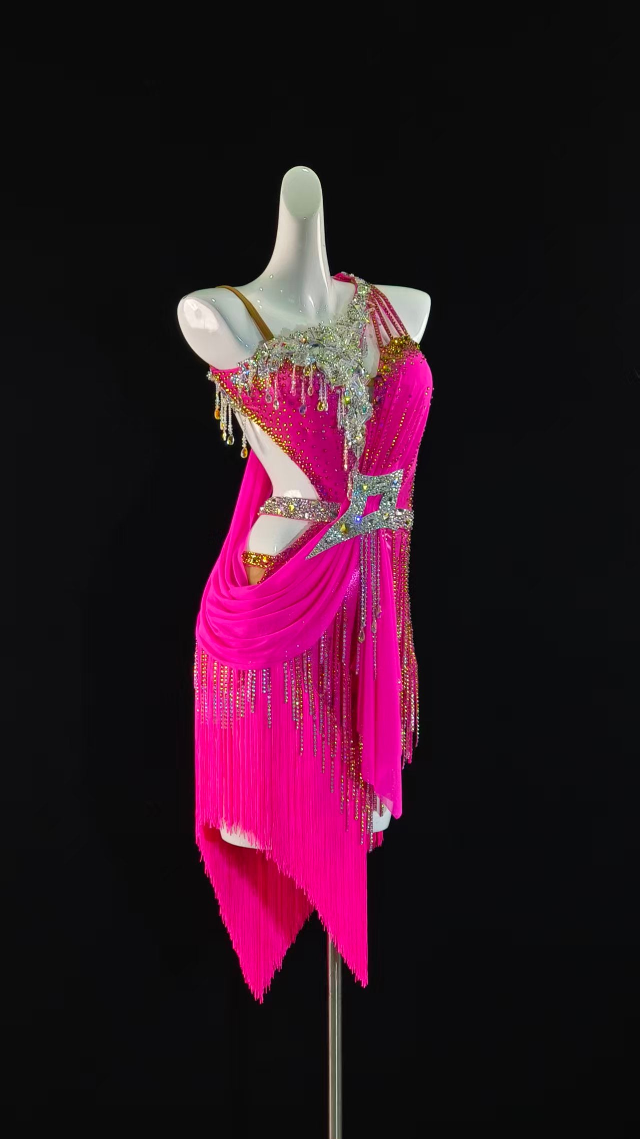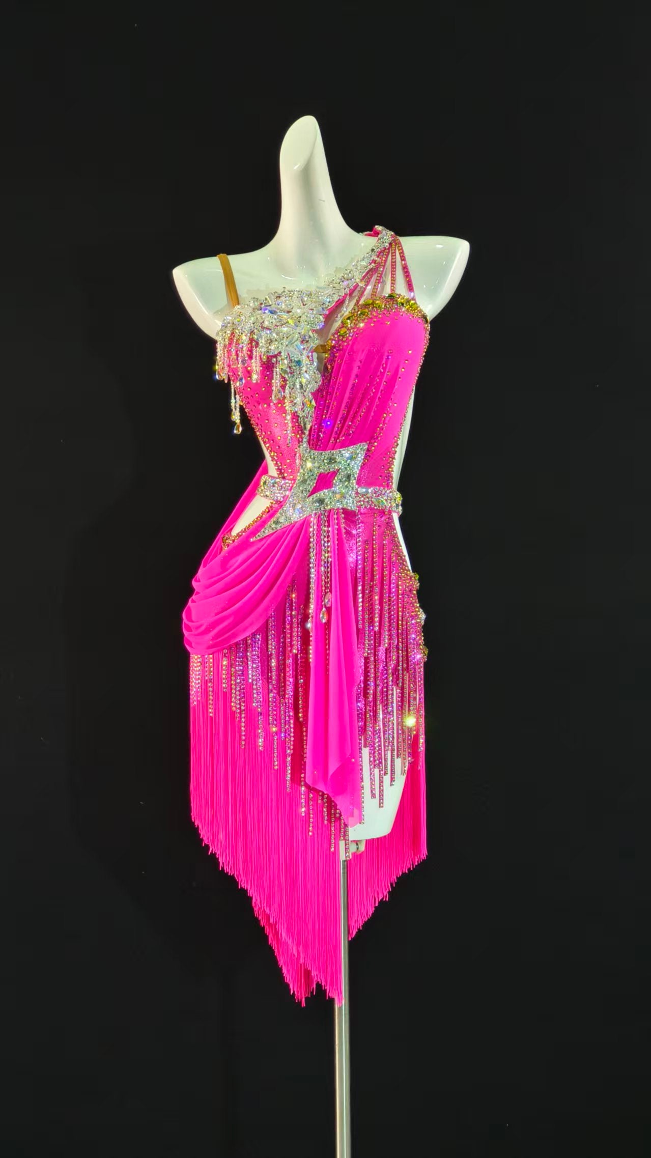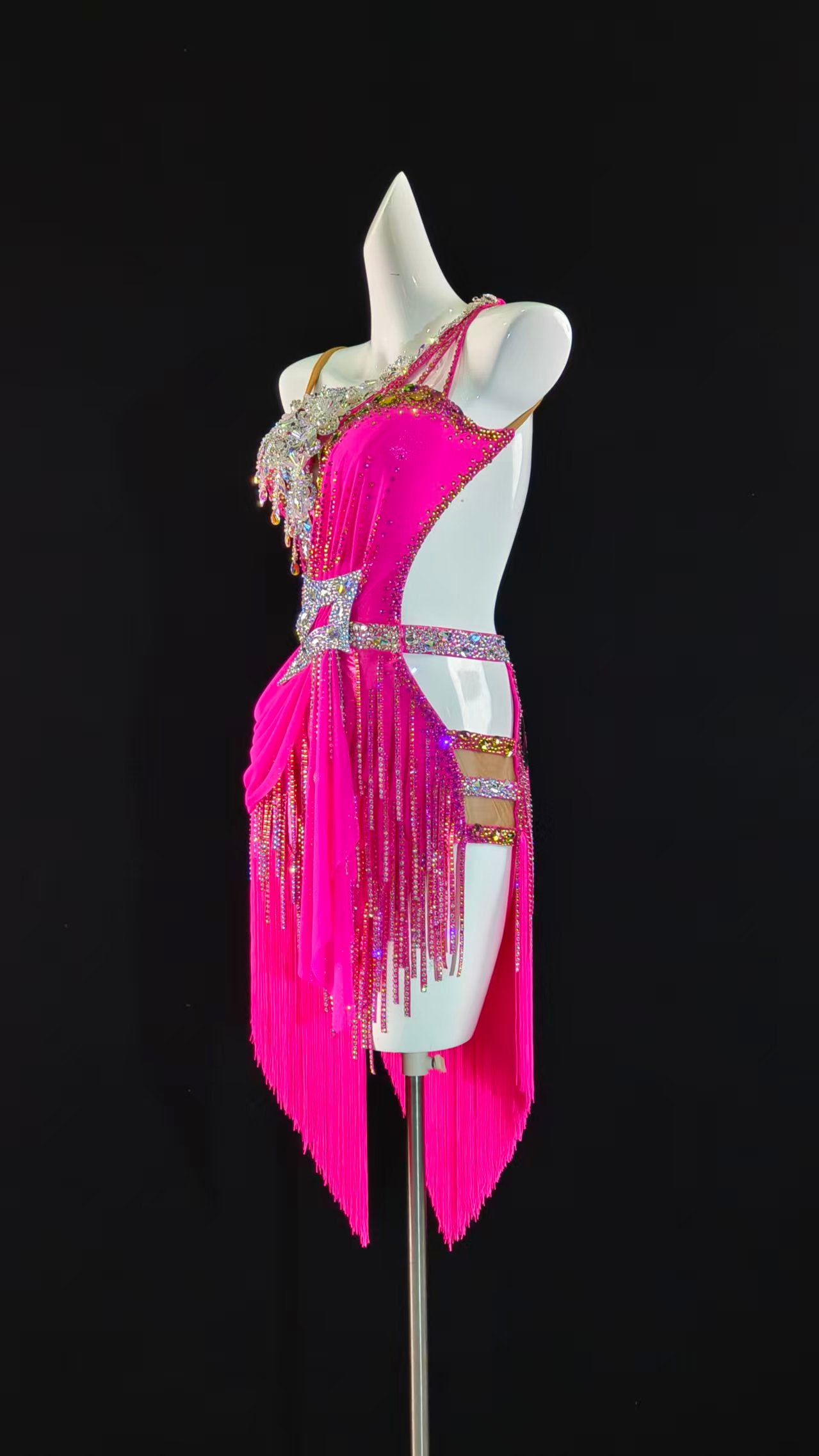 Sexy and Fun Hot Pink Fringe Latin Dress