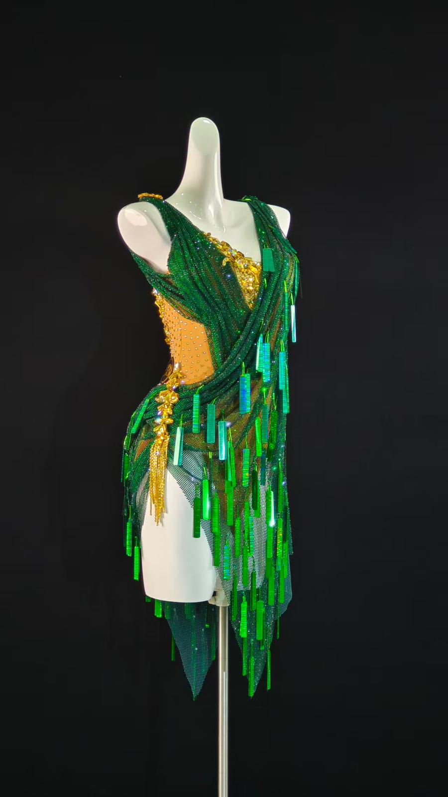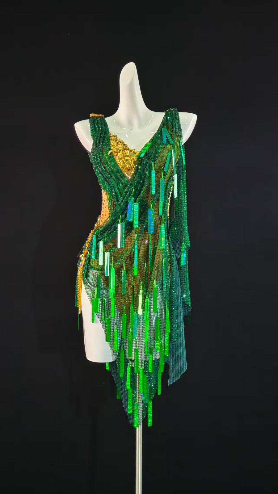Sexy and Fun Green Stoned Net with Flakes Latin Dress