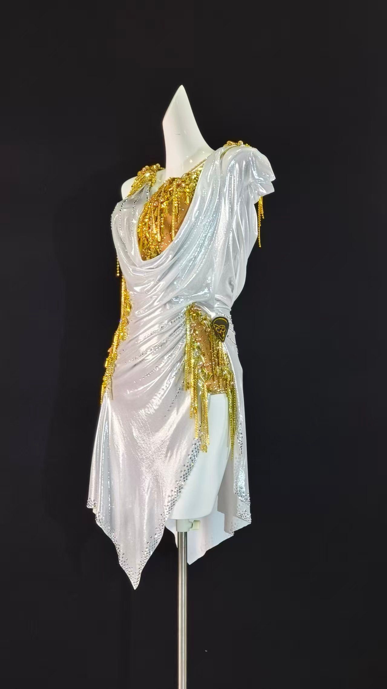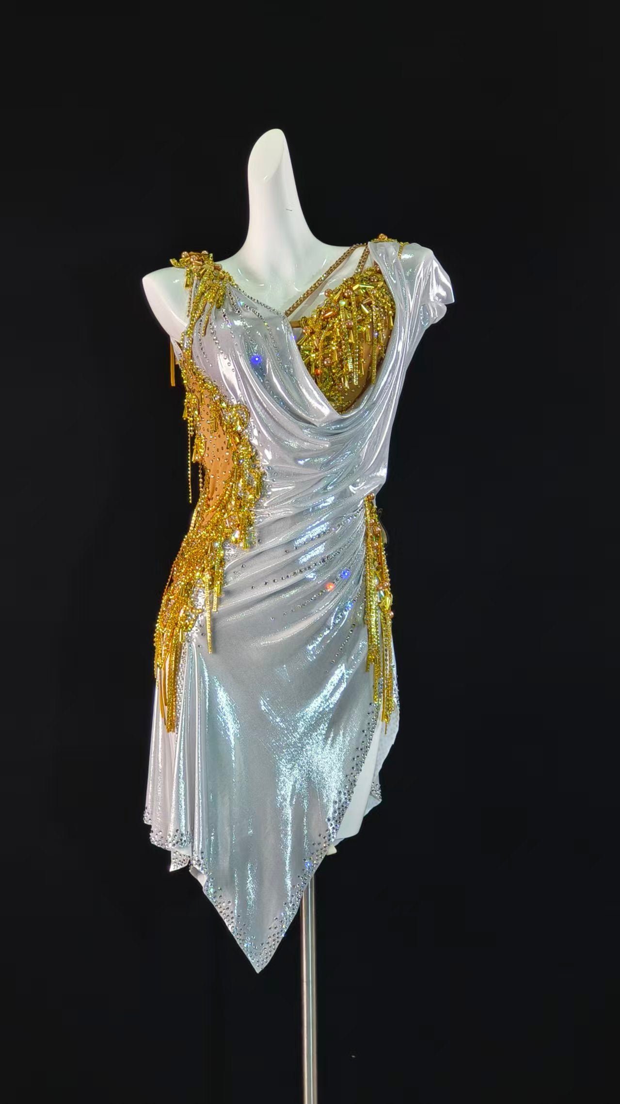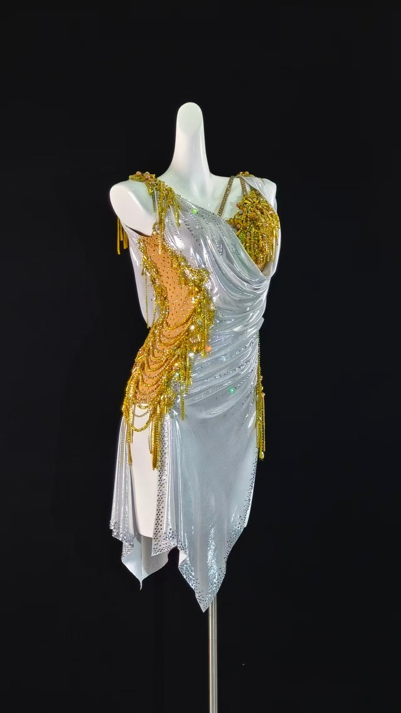 Sexy and Fun Metallic White Gold Latin Dress