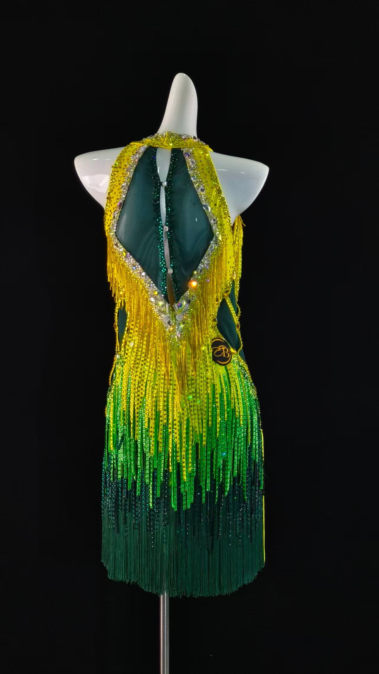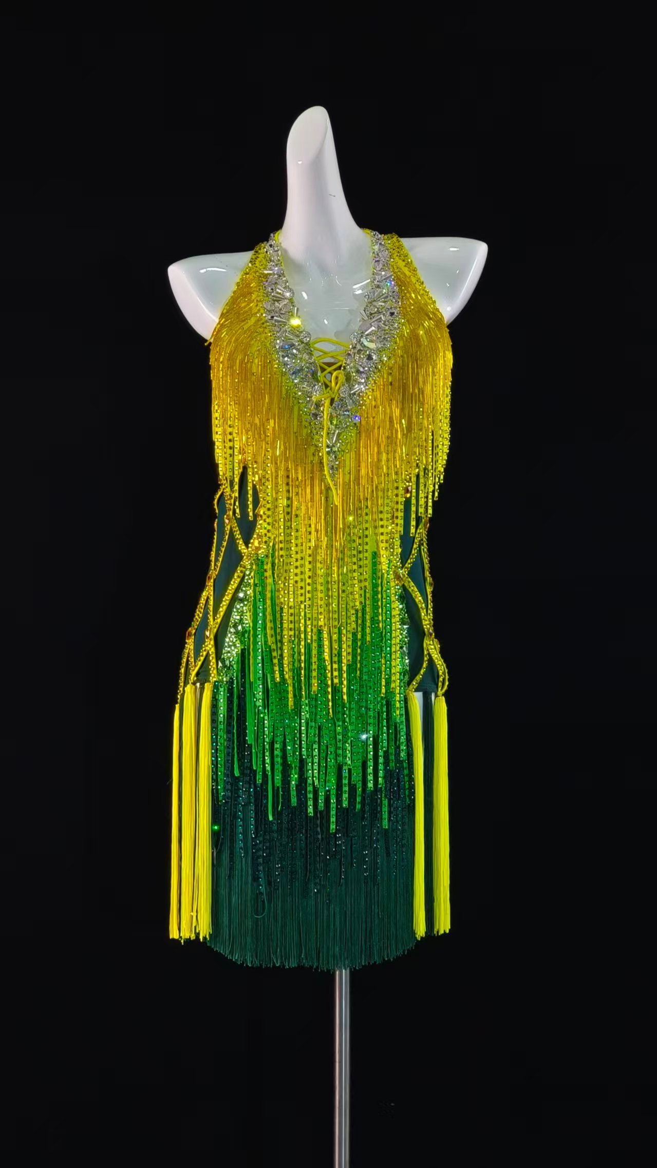 Sexy and Fun Yellow Green Stoned Cloth Latin Dress