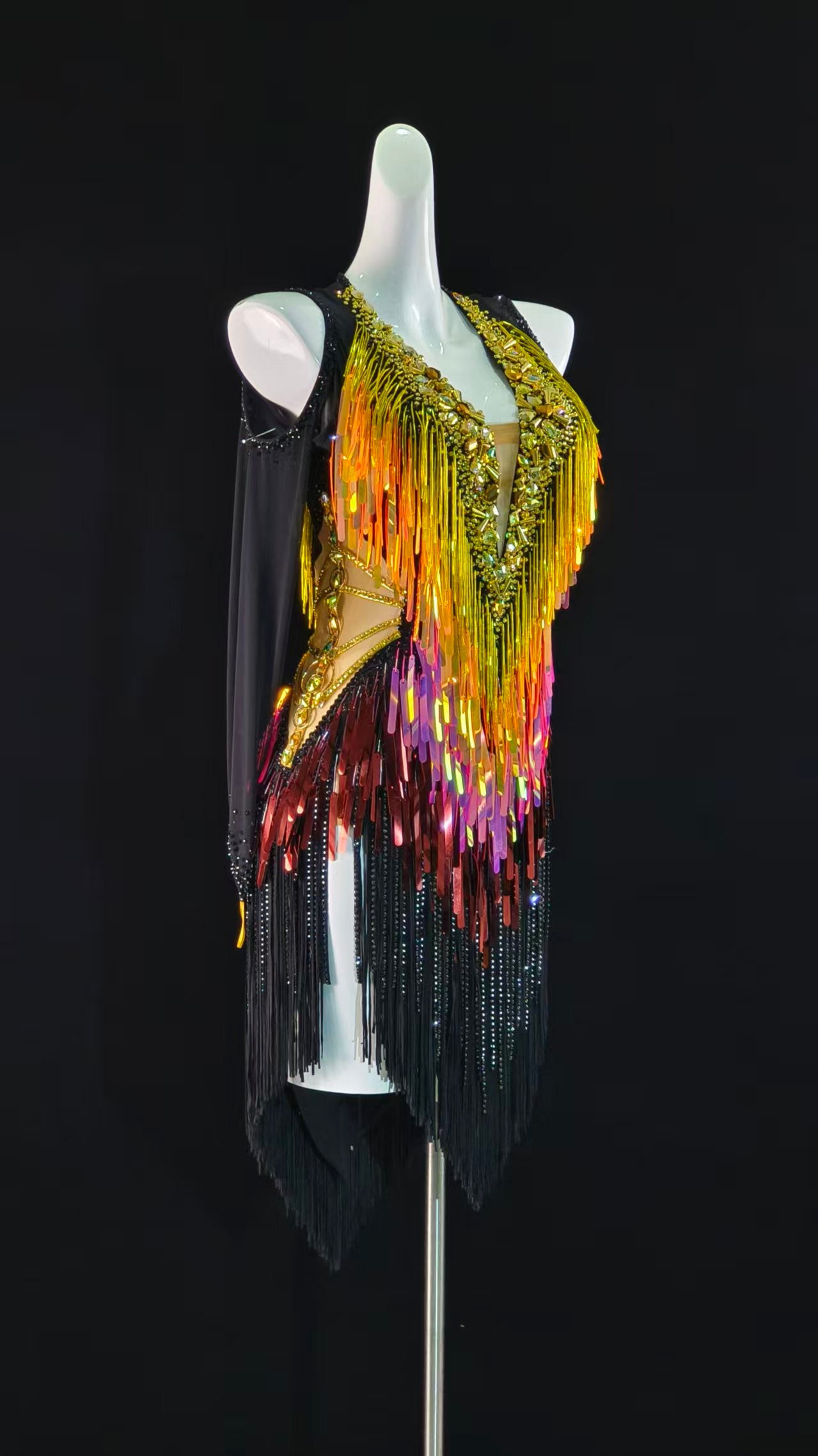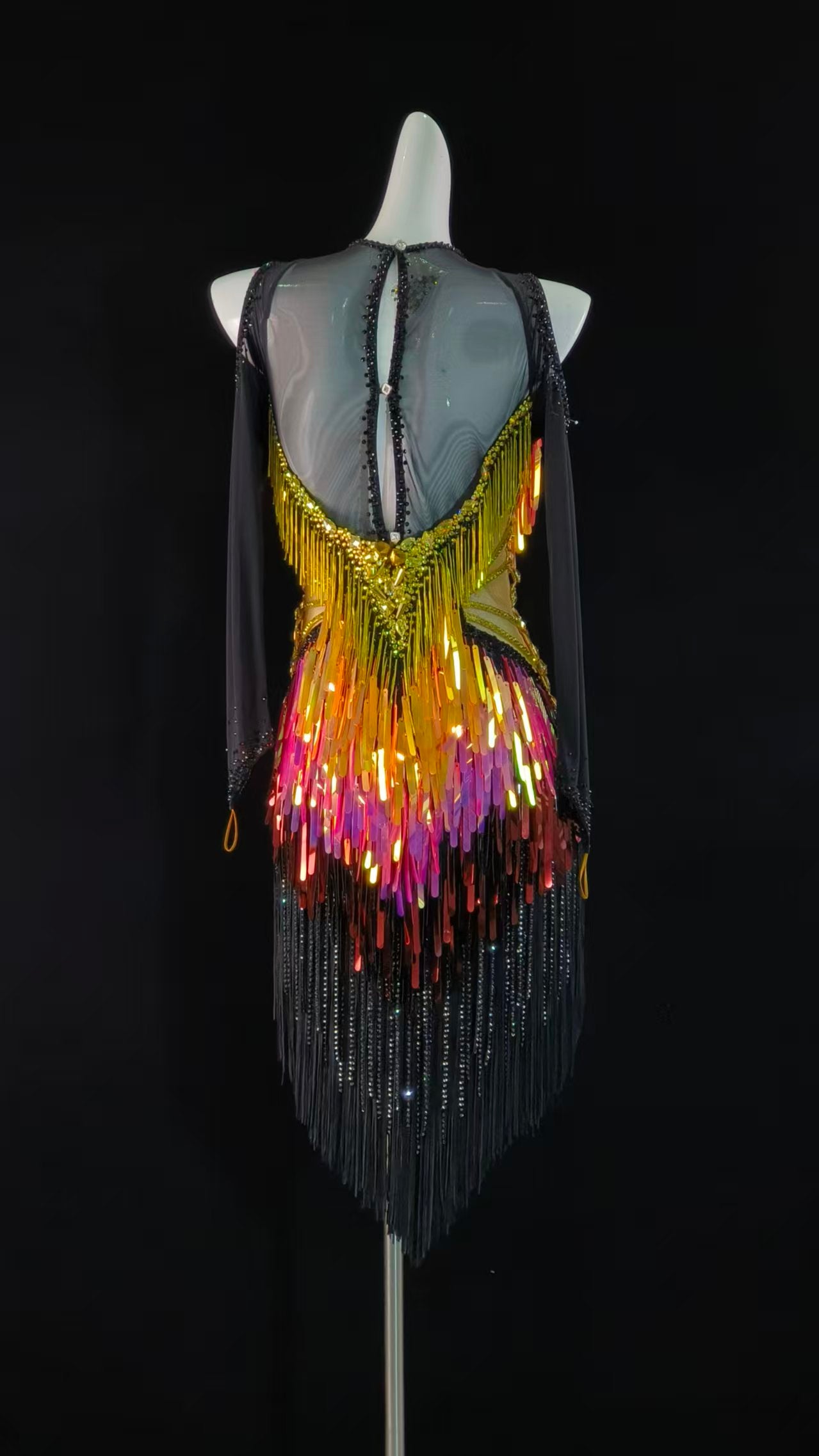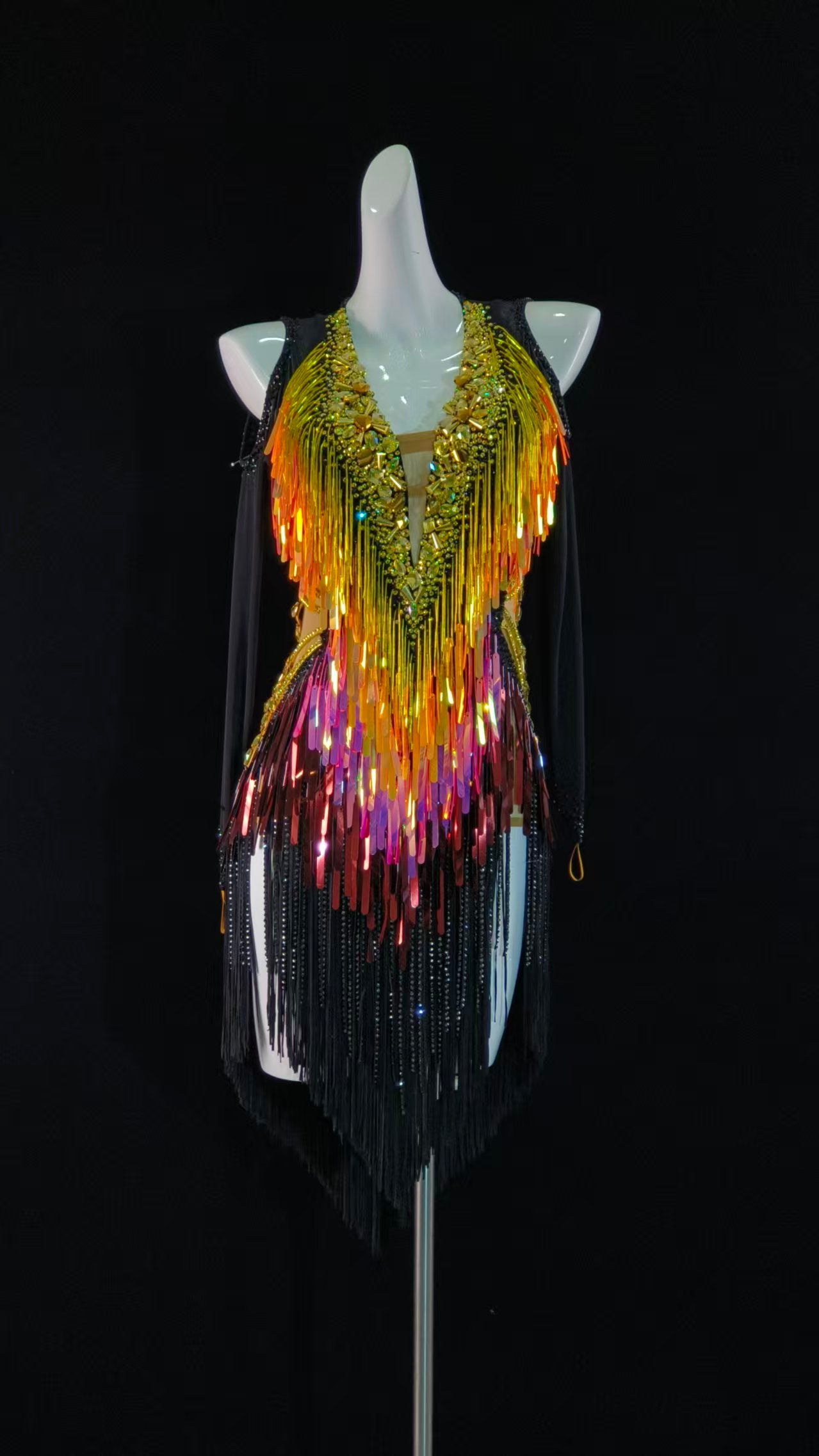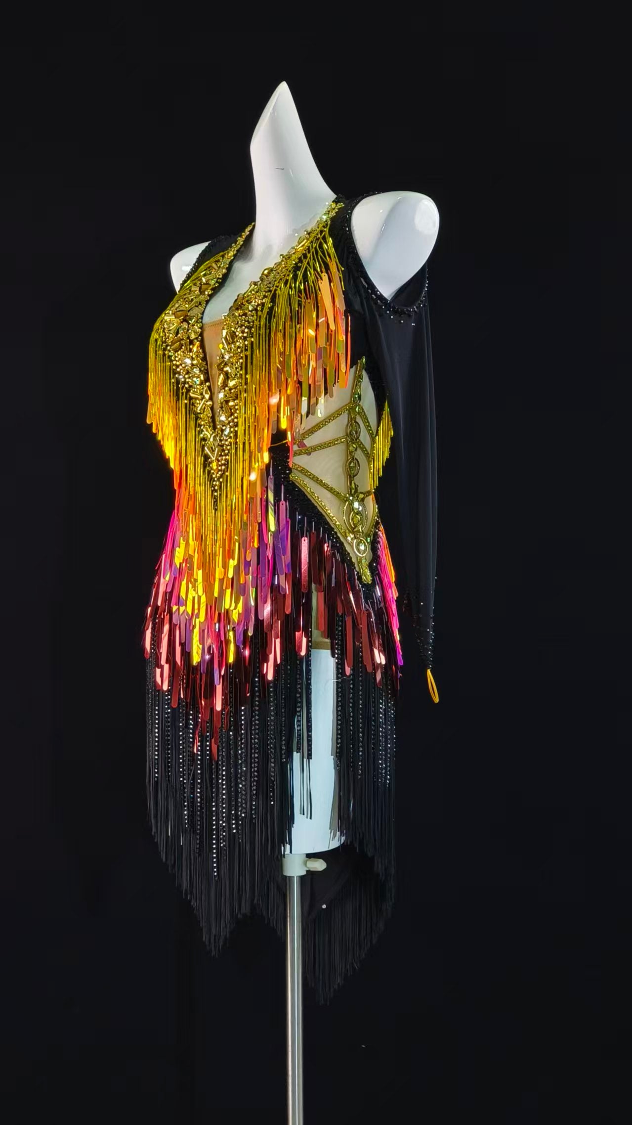 Sexy and Fun Ombre Orange Black Flakes Latin Dress with Long Sleeves