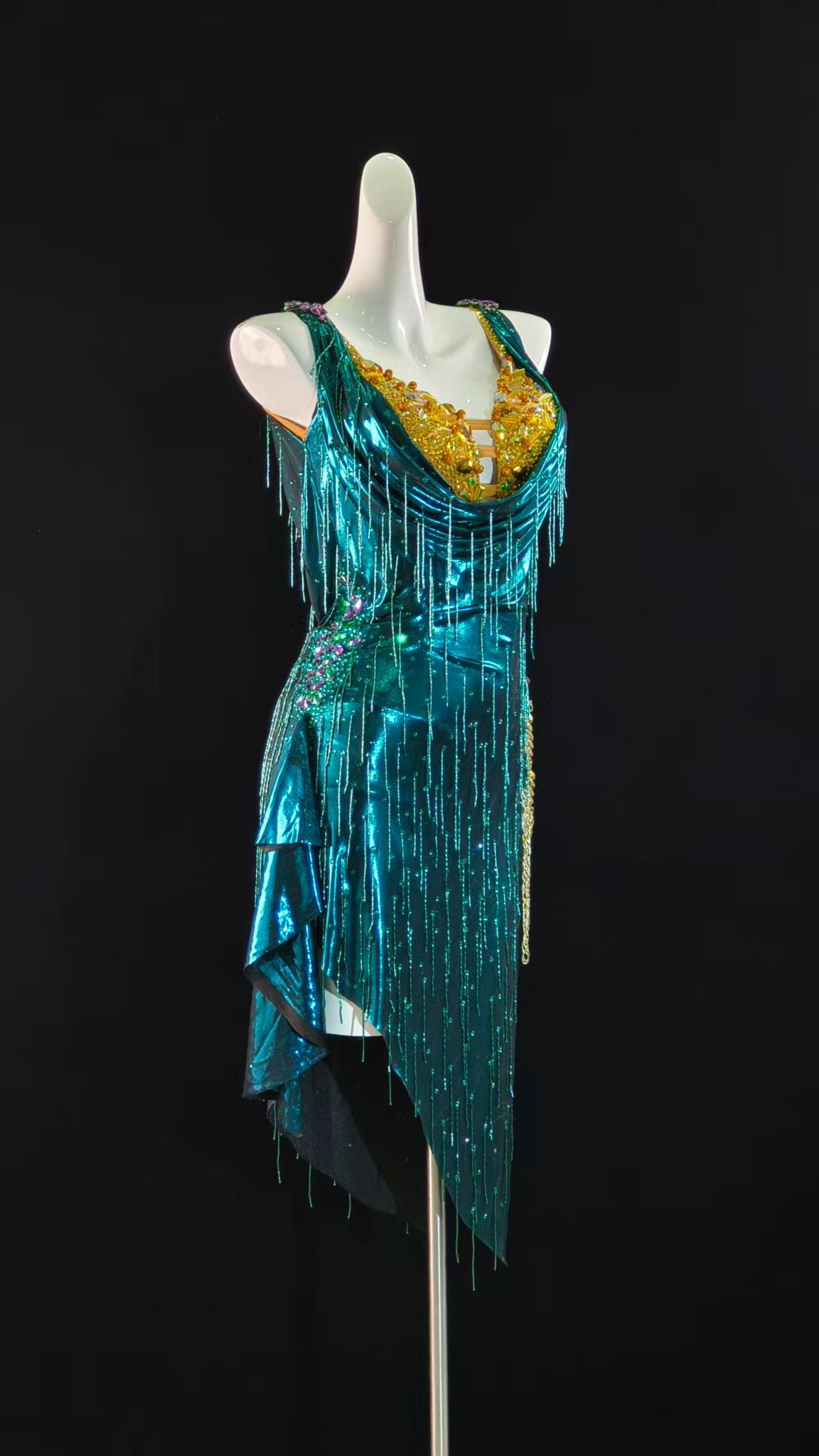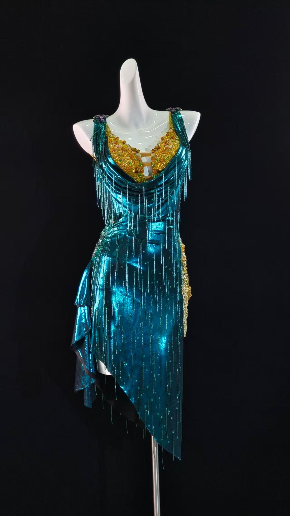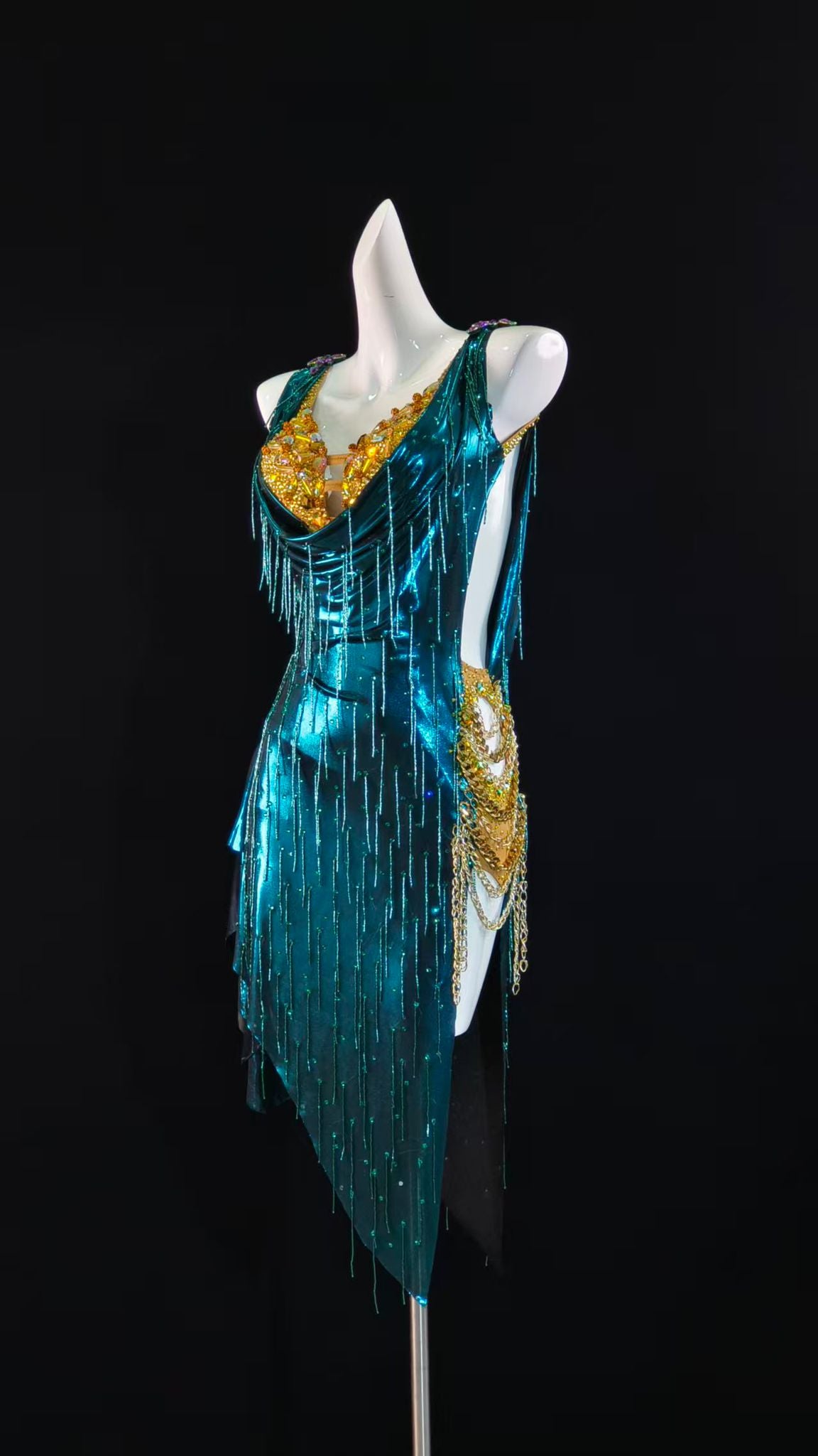 Sexy and Fun Metallic Teal Latin Dress
