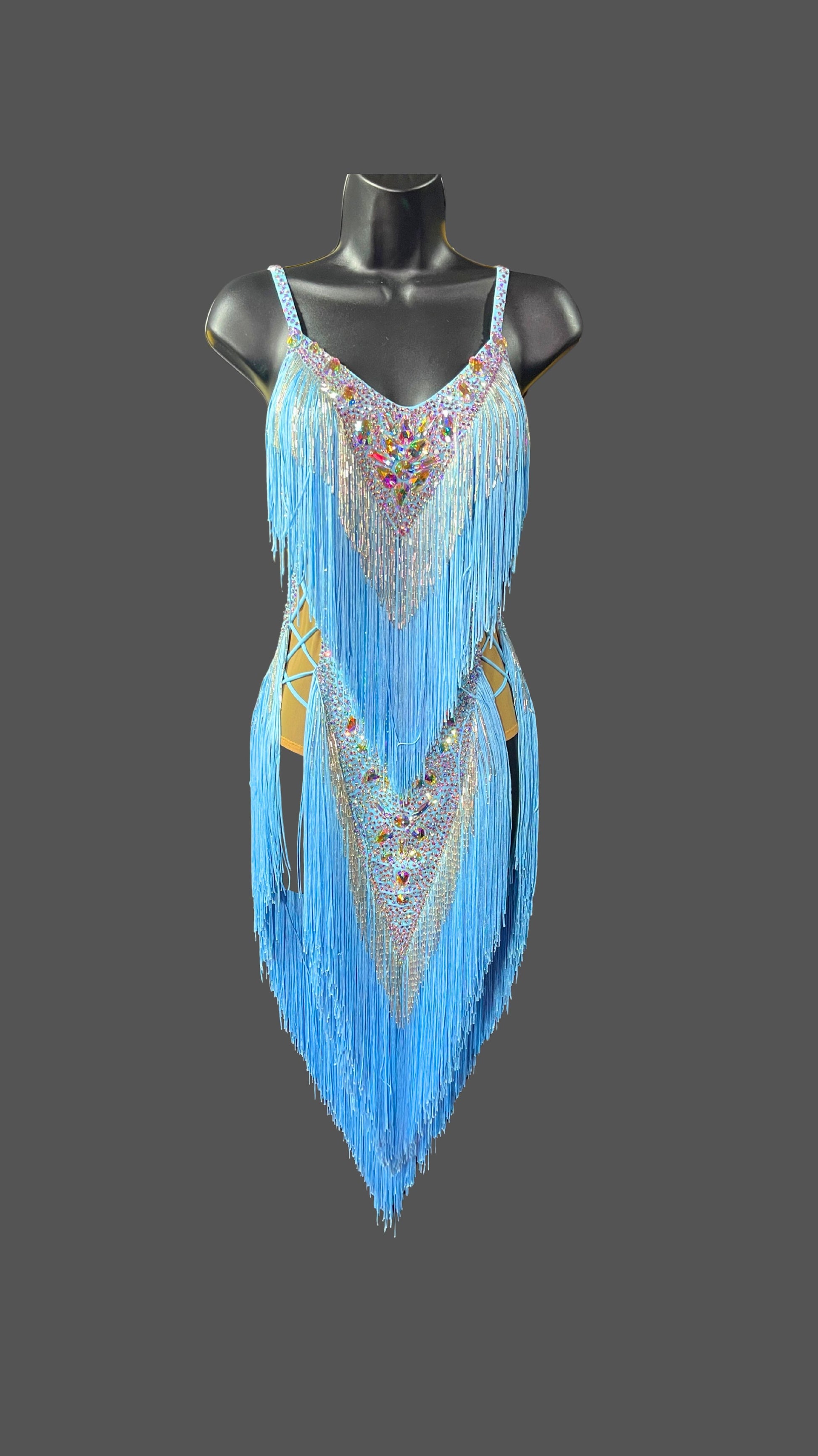 Elegant Fun Aqua Blue Fringe Latin Dress