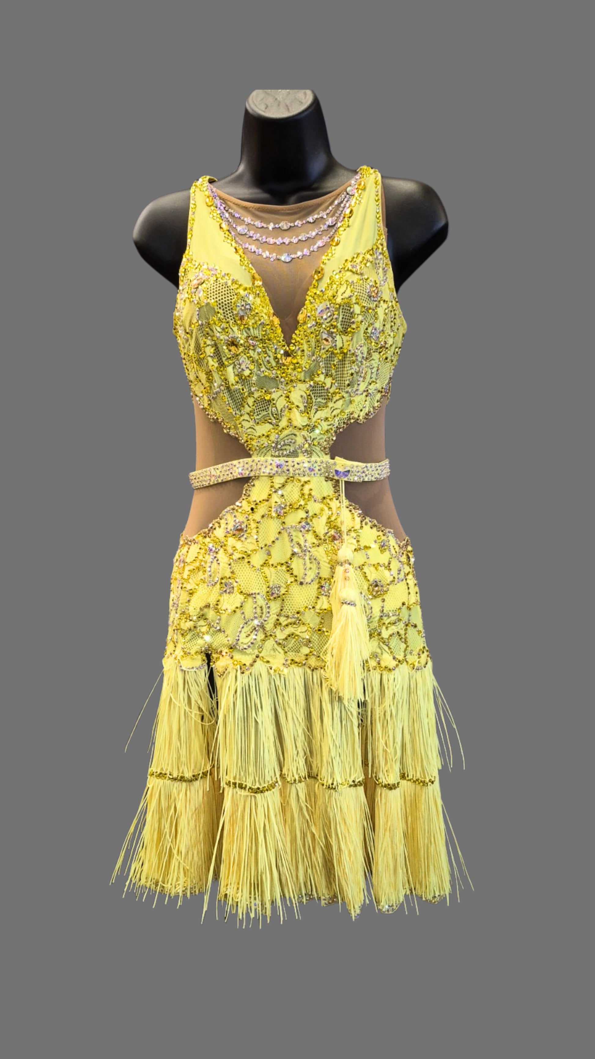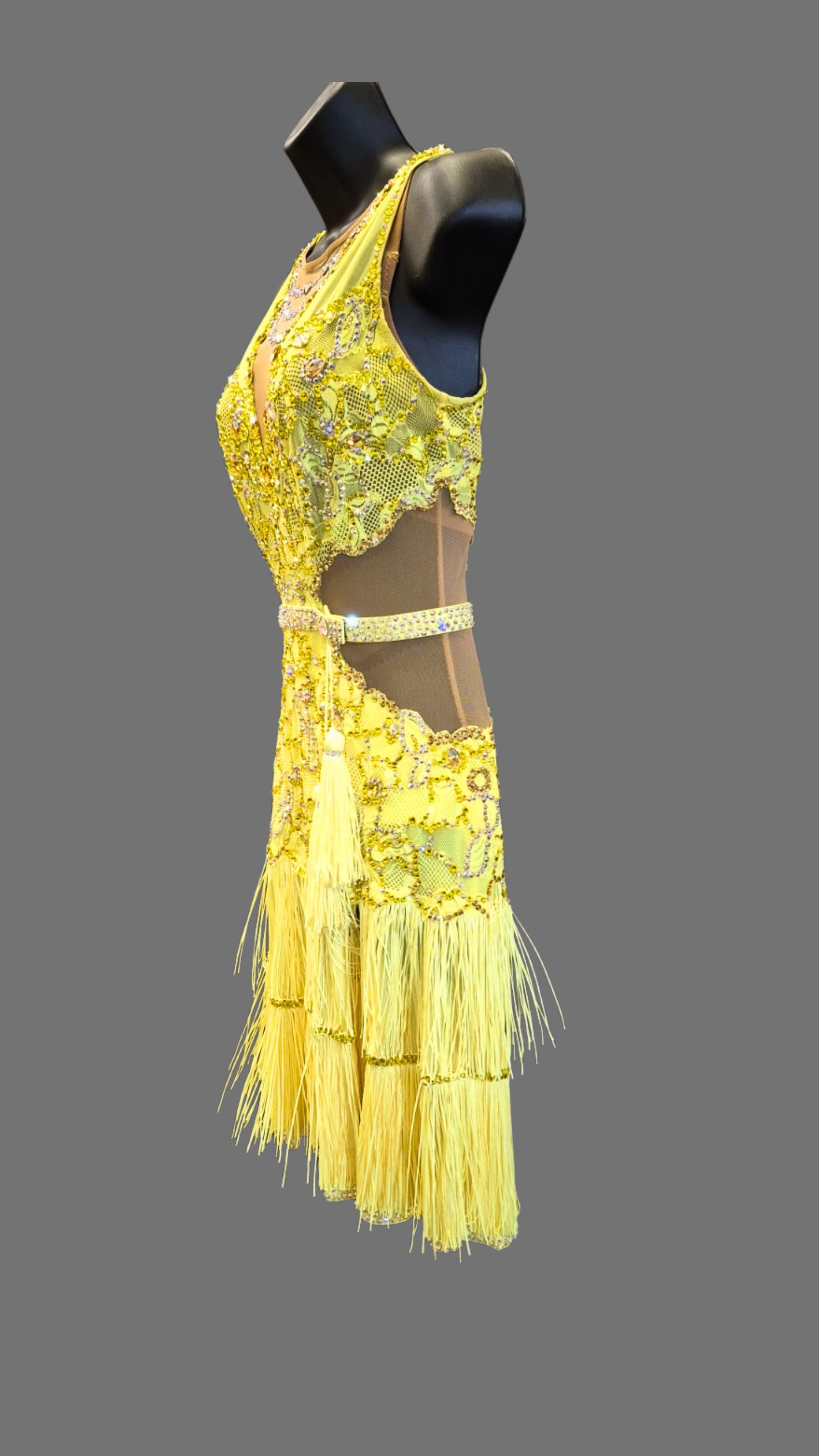Elegant Fun Yellow Fringe Latin Dress