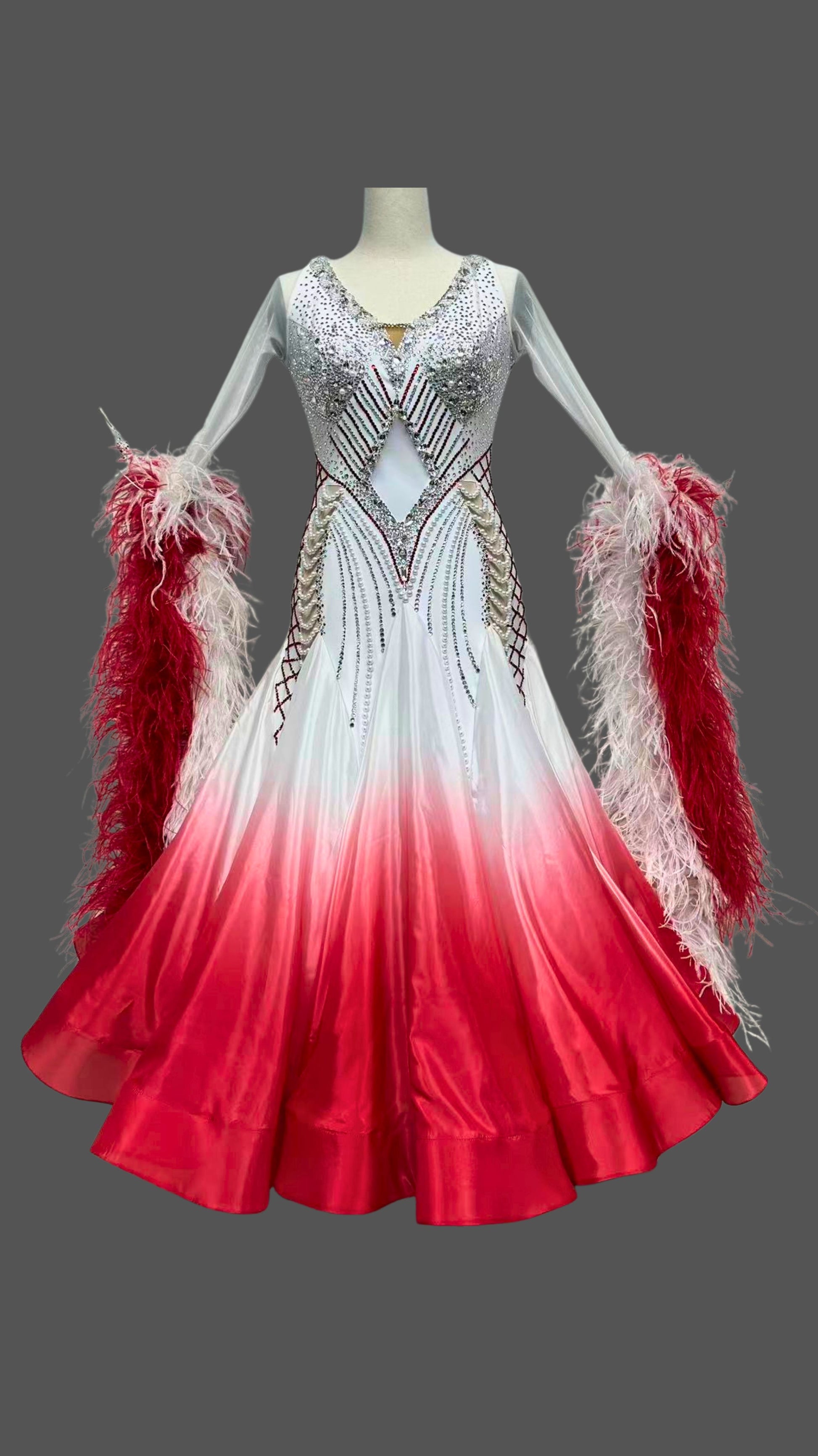 Elegant Ombre Black and White Ballroom Dress with Long Sleeves