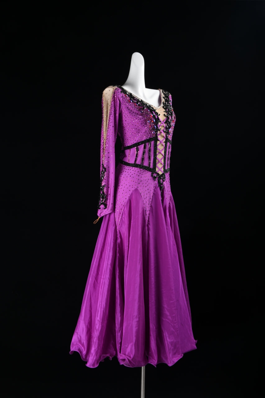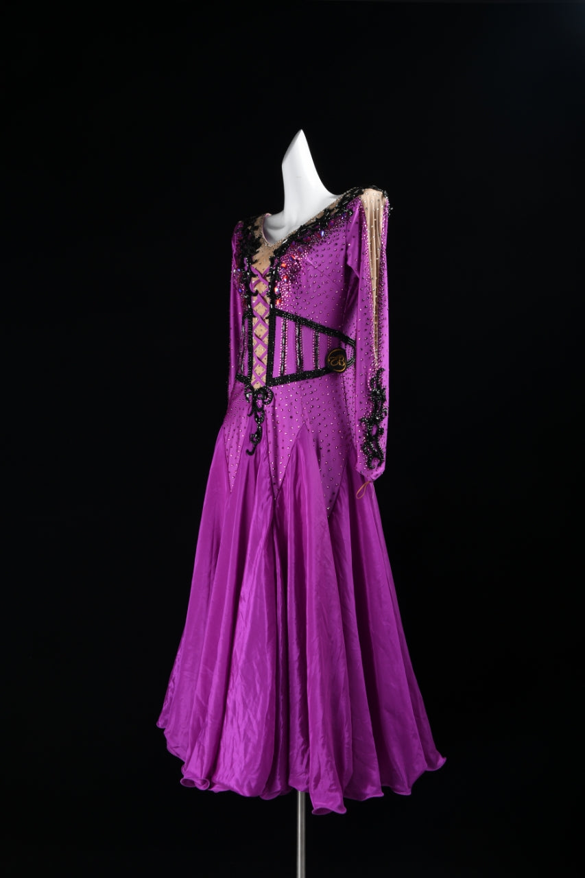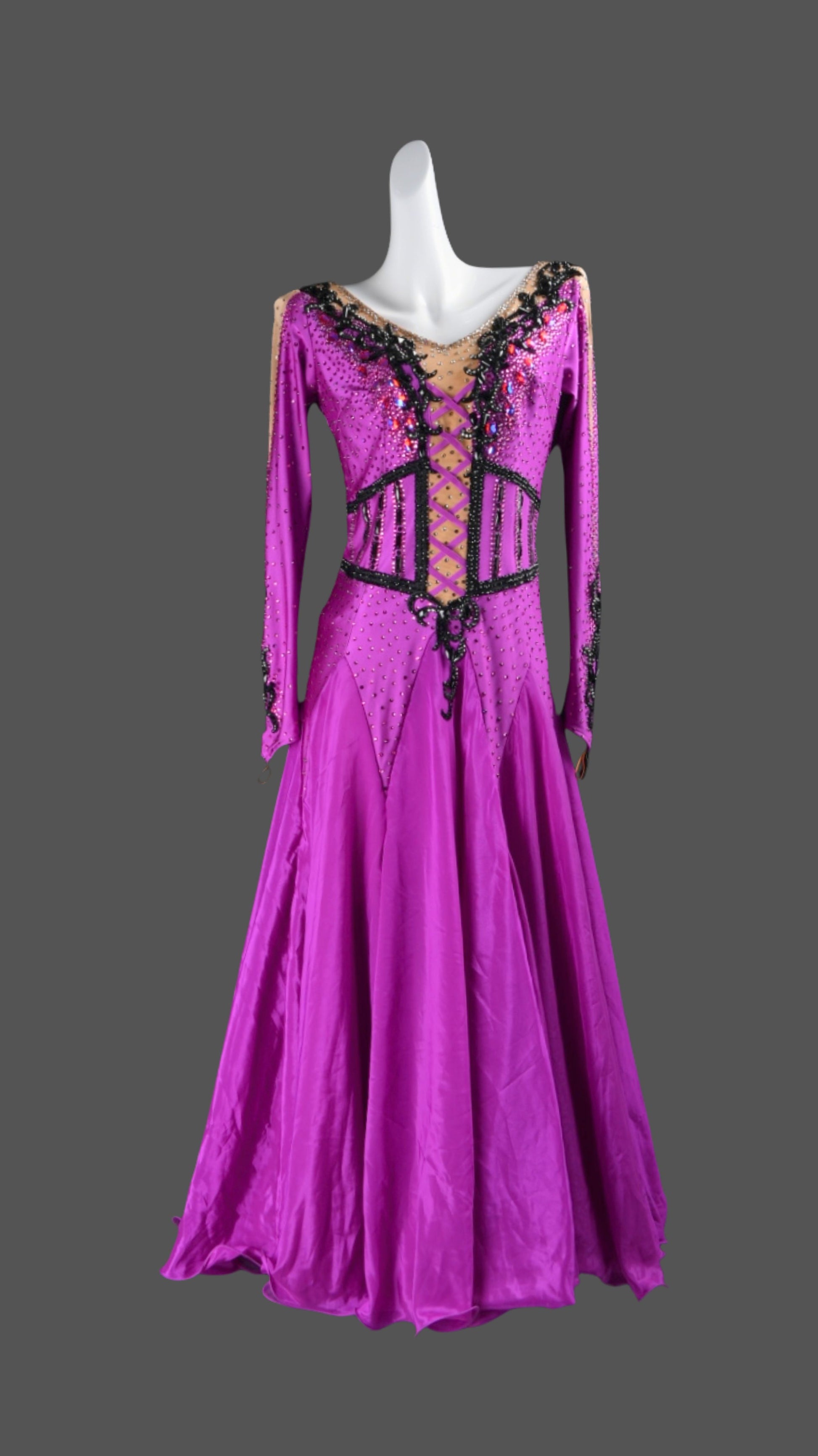 Elegant Fushcia Ballroom Dress with Long Sleeves