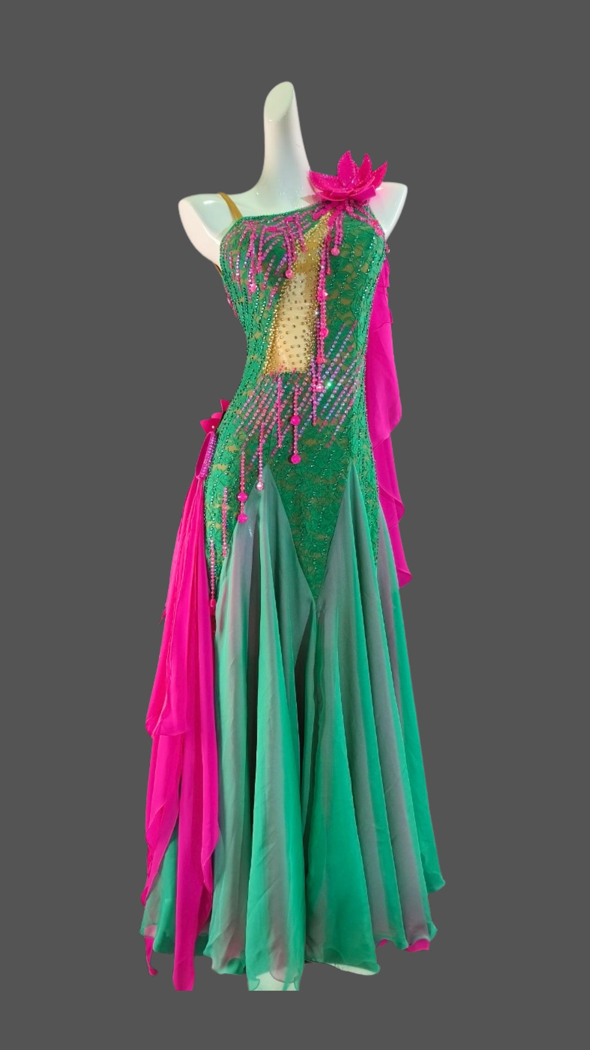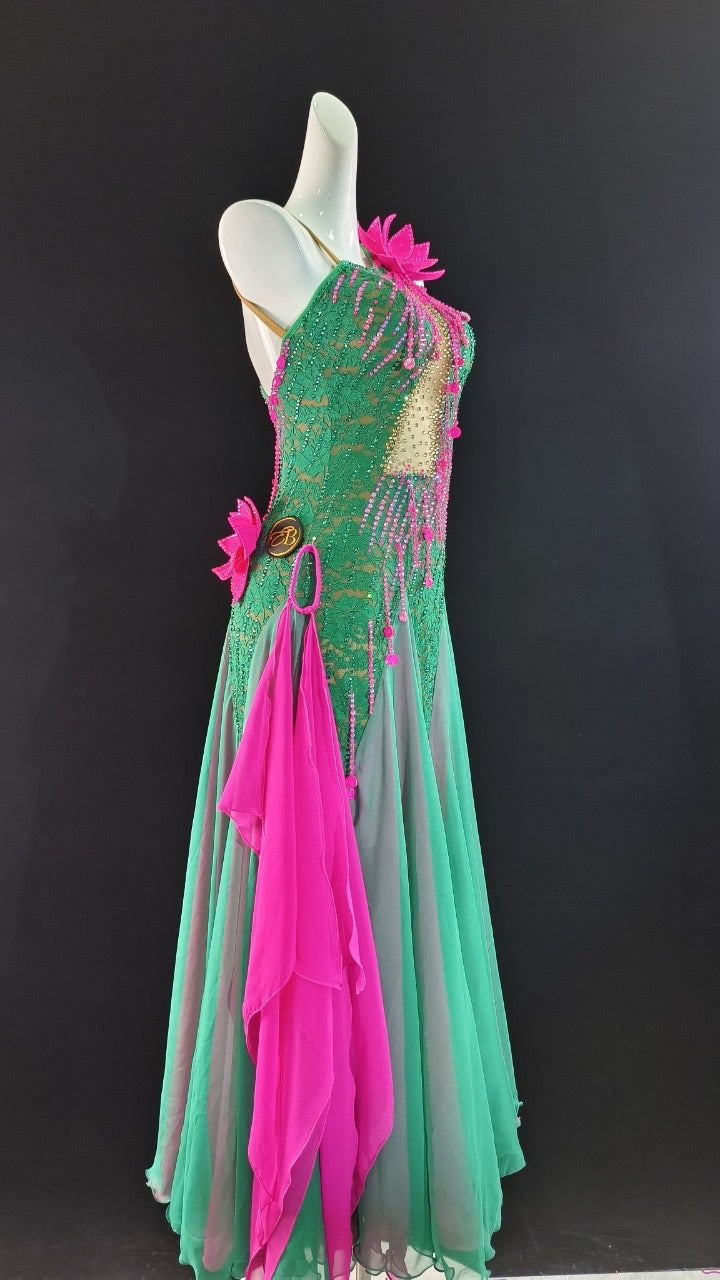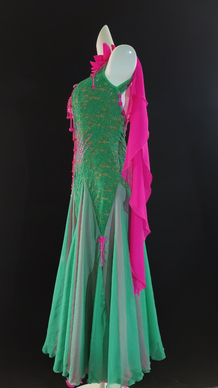 Elegant Green Hot Pink Ballroom Dress