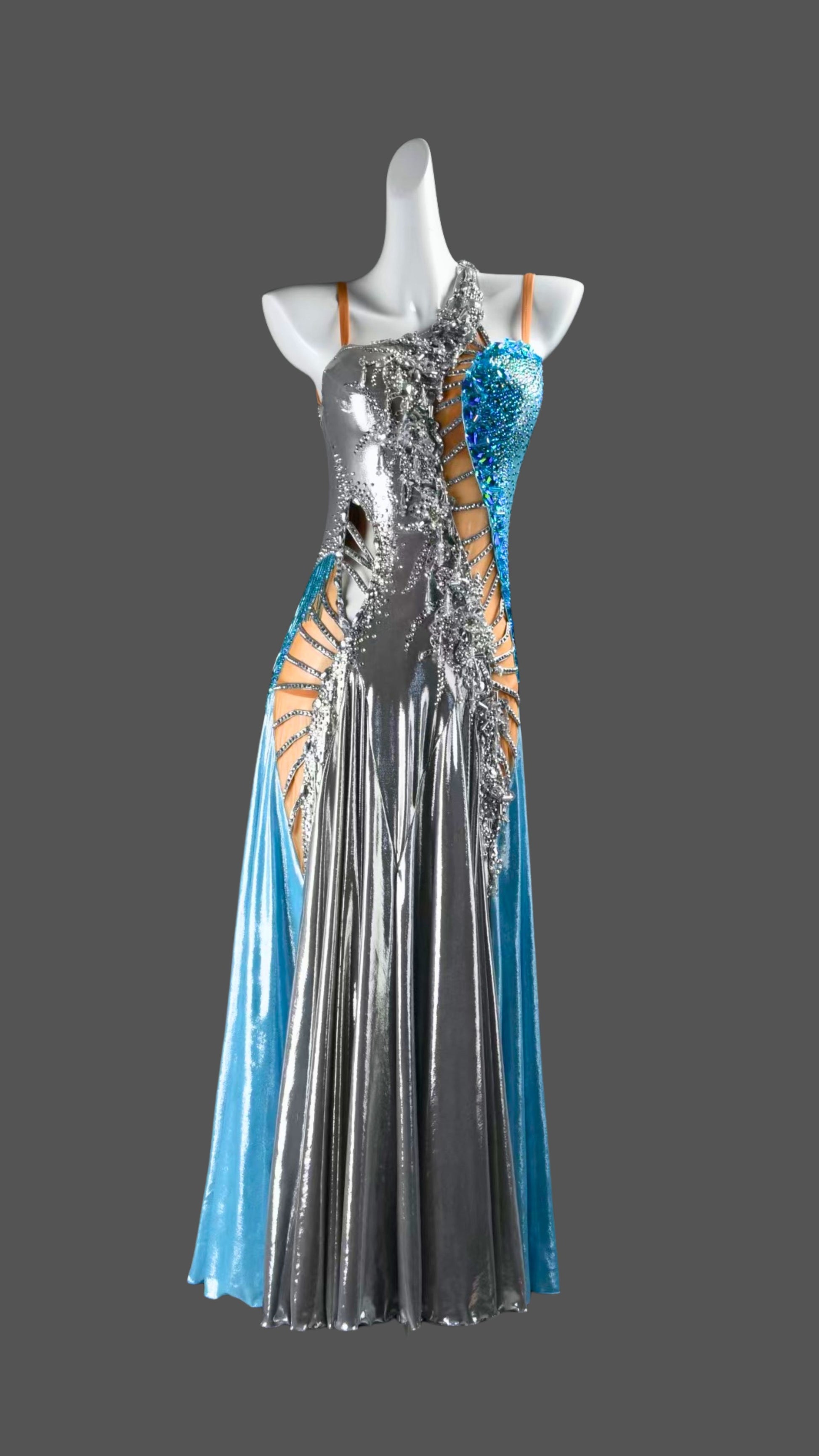 Elegant and Sexy Silver and Light Blue Metallic Ballroom Dress