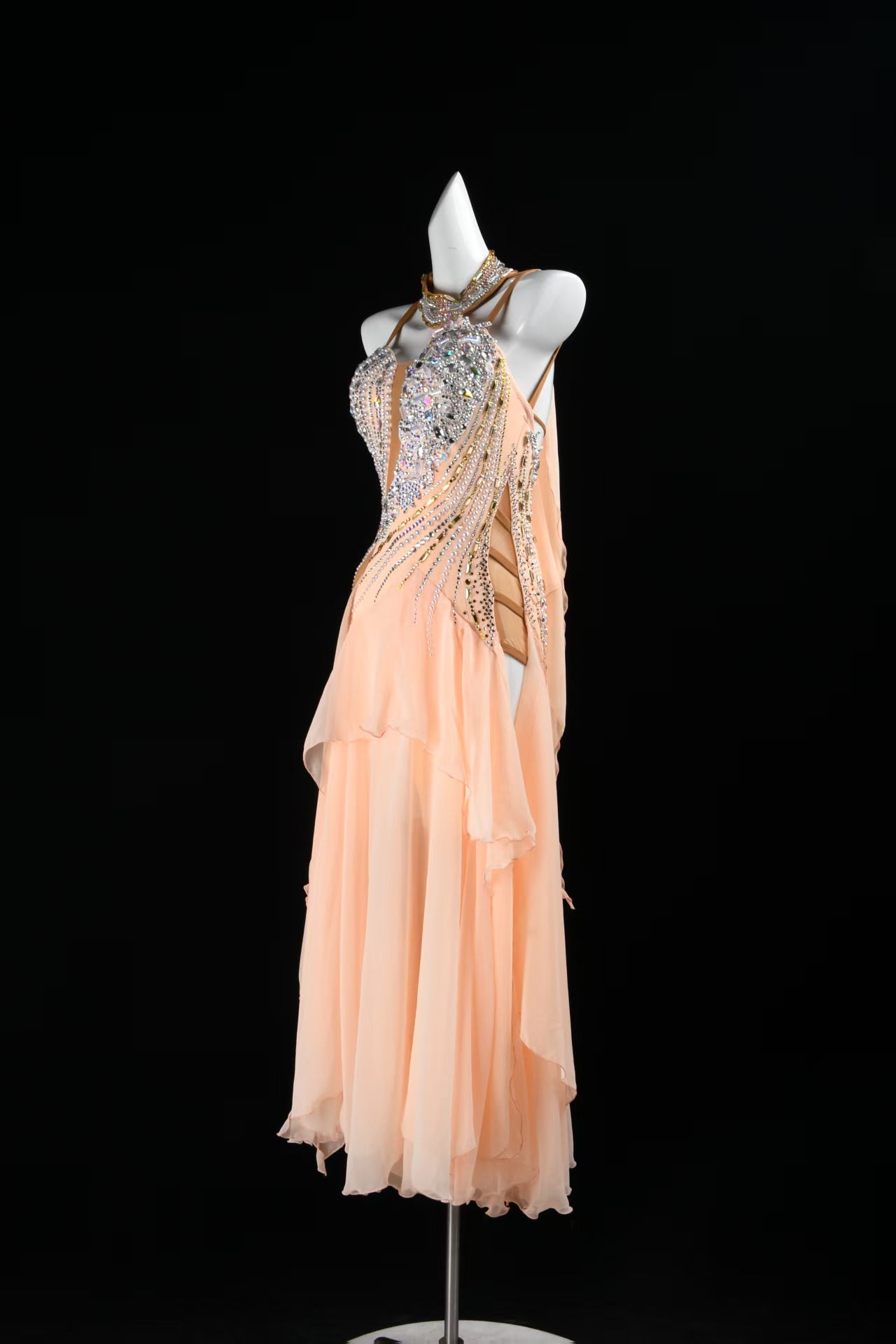 Elegant and Sexy Peach Chiffon Ballroom Dress