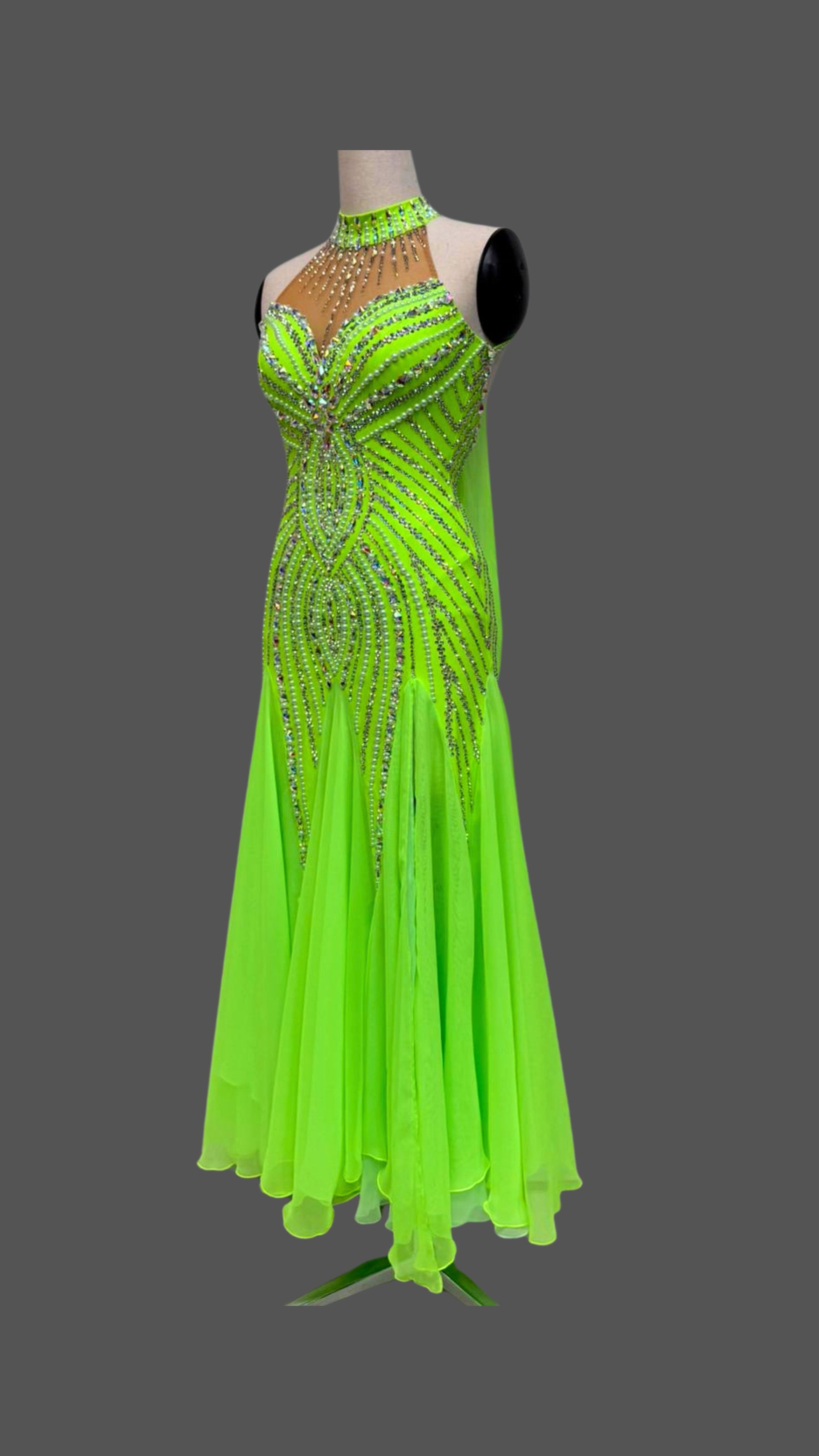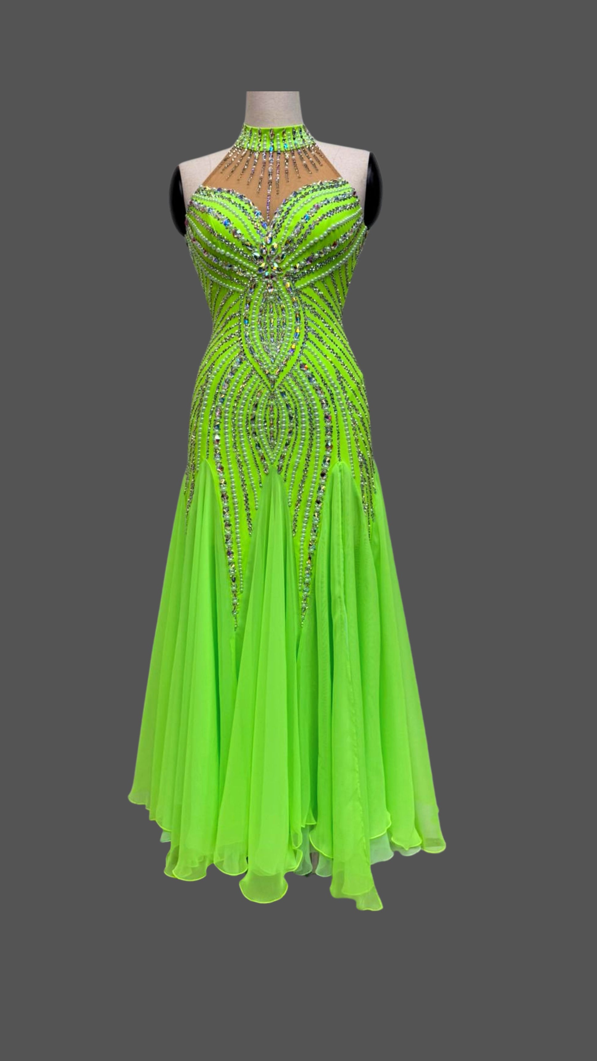 Elegant and Sexy Lime Green Chiffon Ballroom Dress