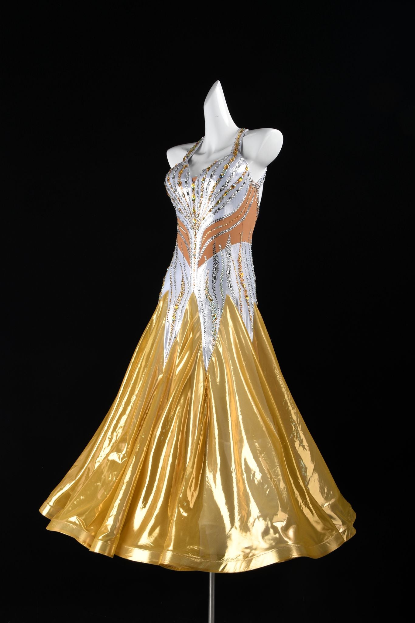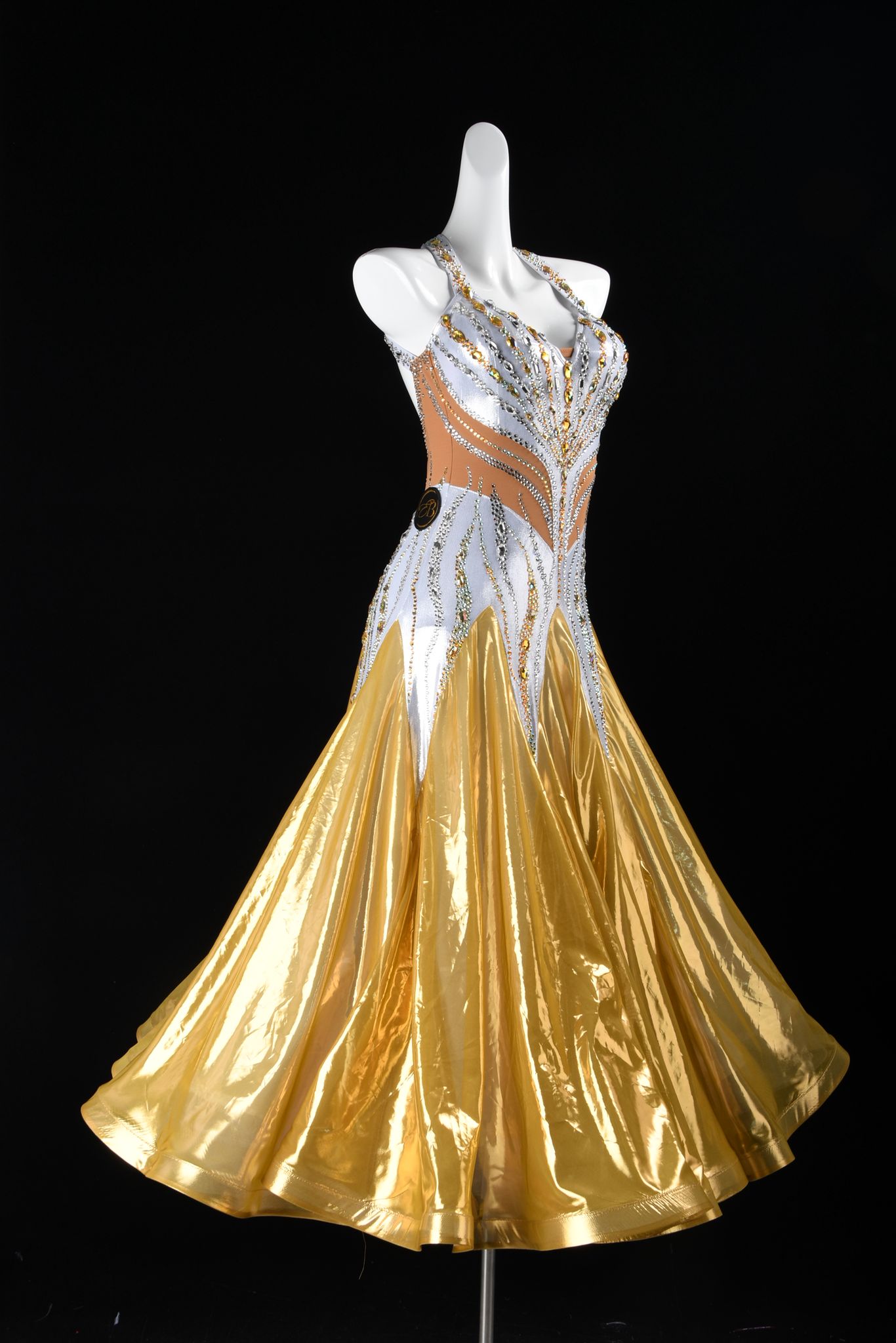 Elegant and Sexy Metallic White Gold Ballroom Dress