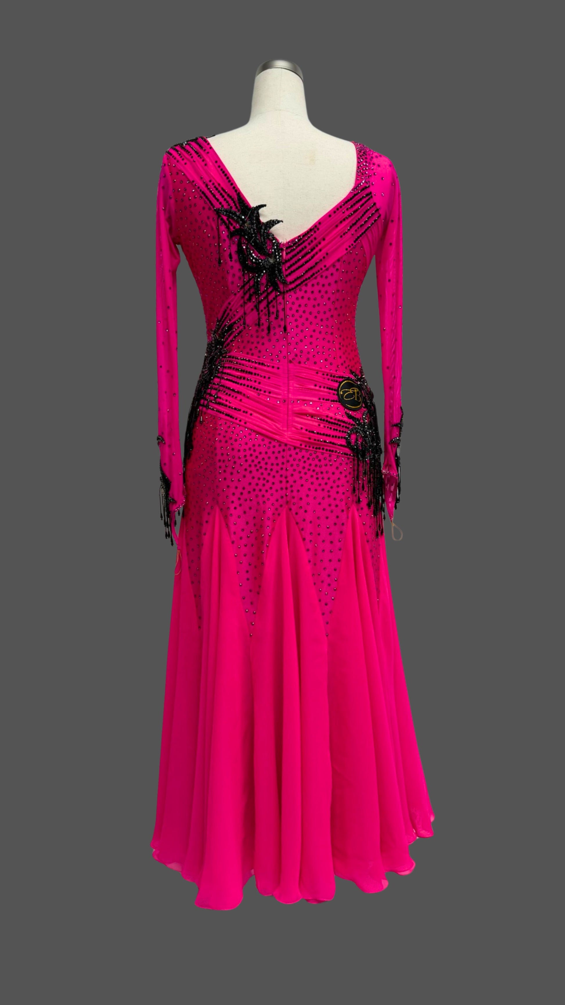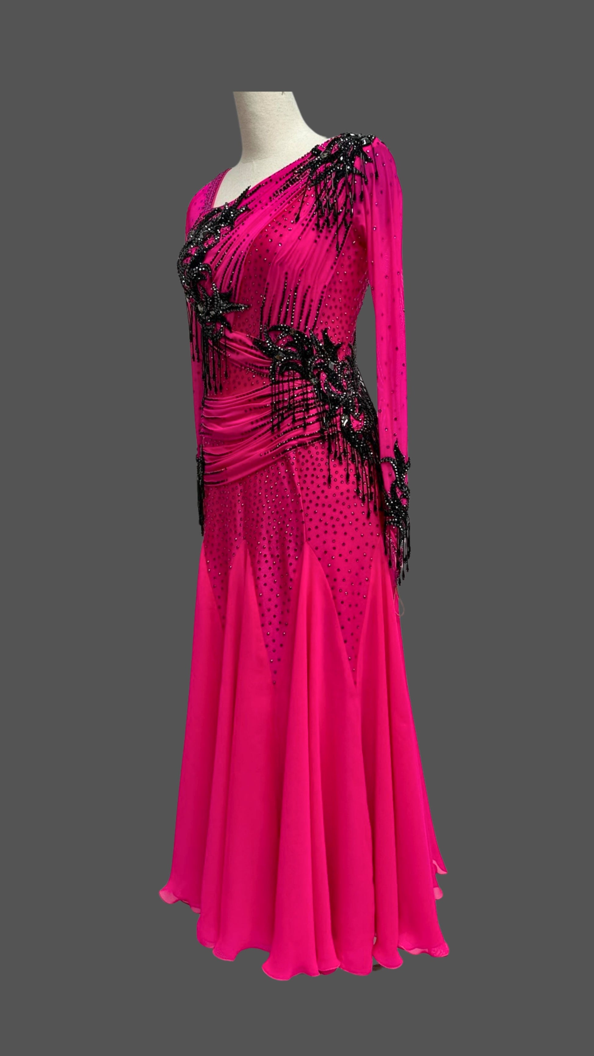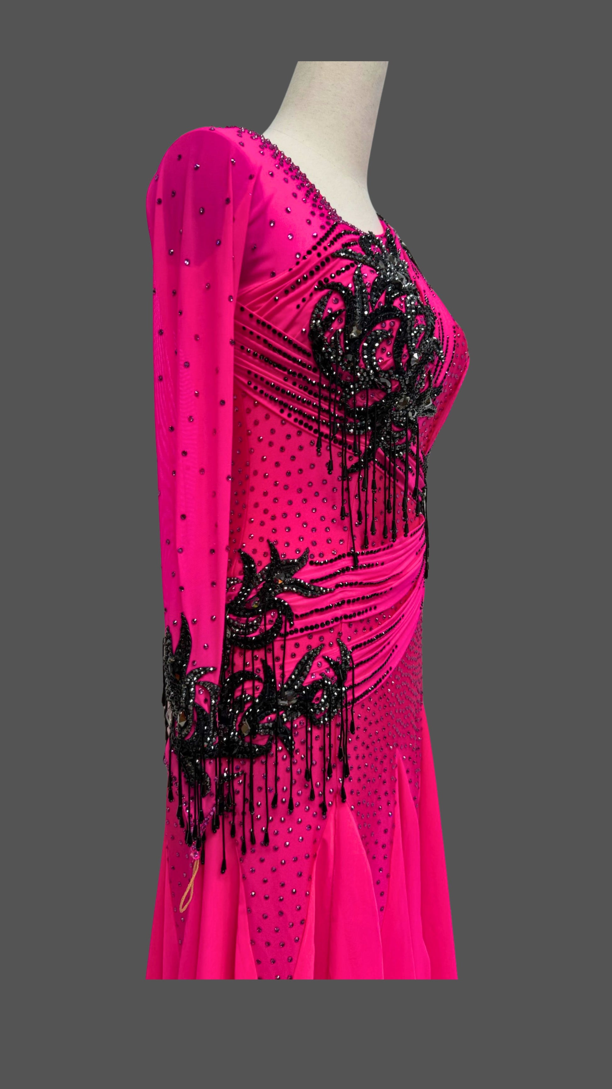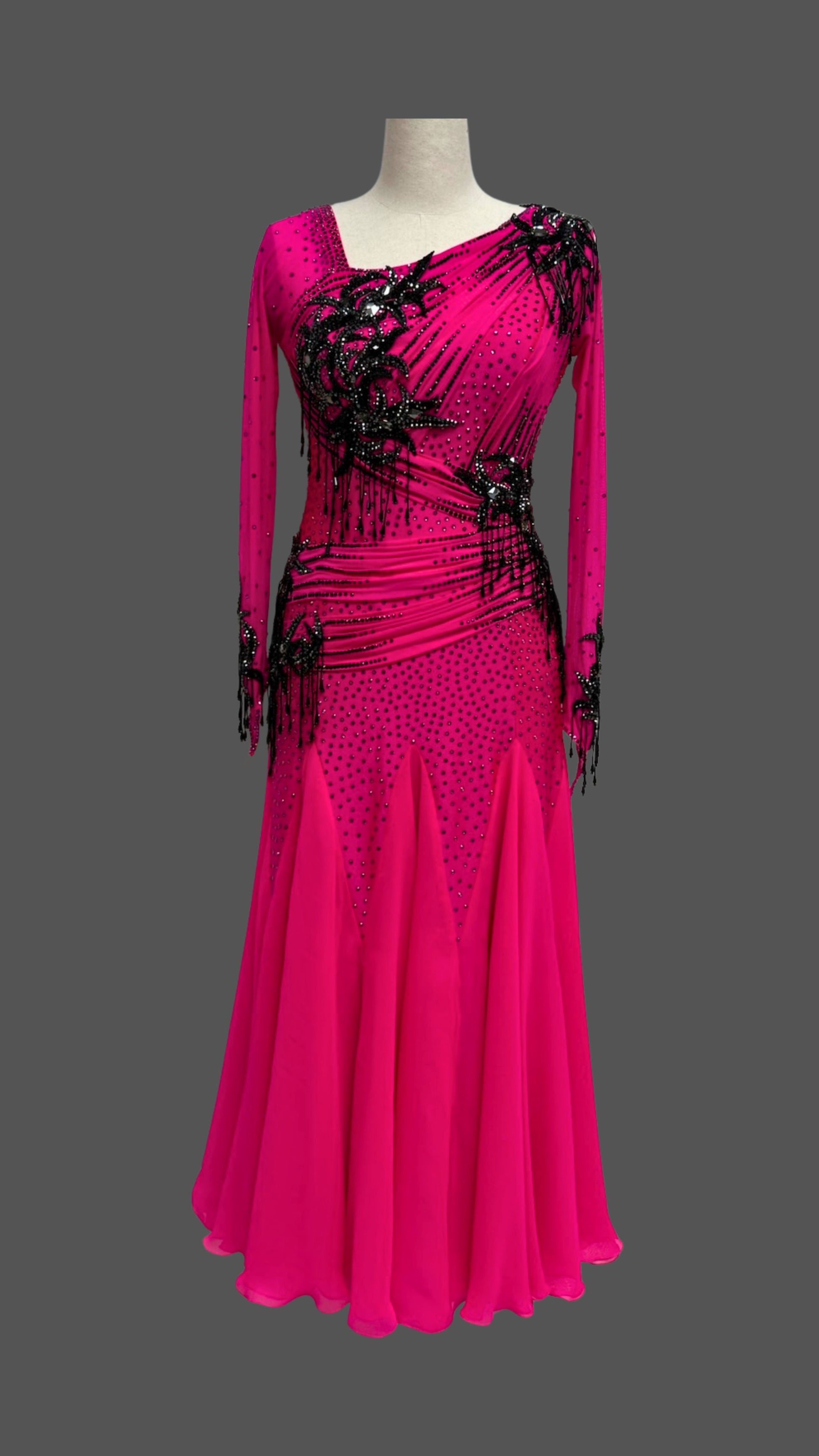Elegant Hot Pink Black Ballroom Dress with Long Sleeves