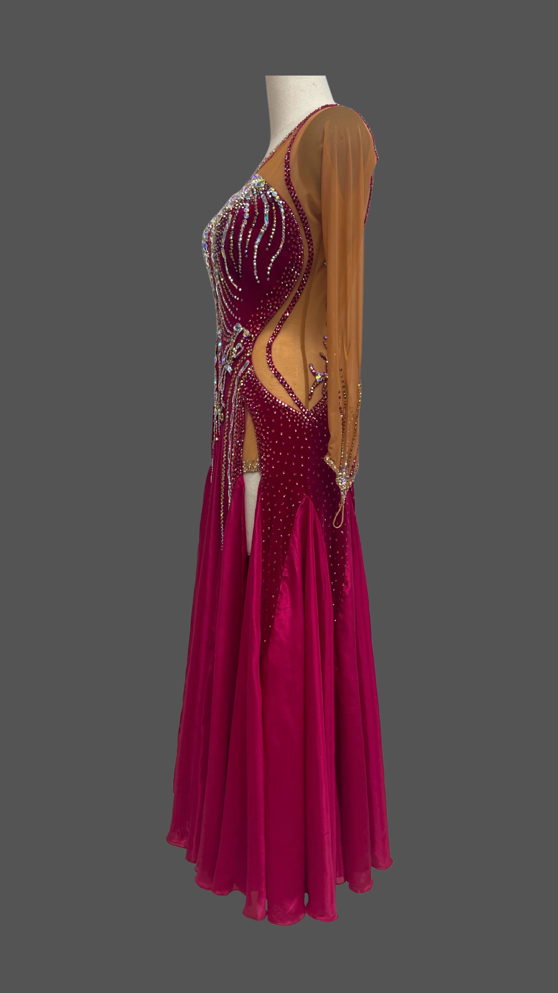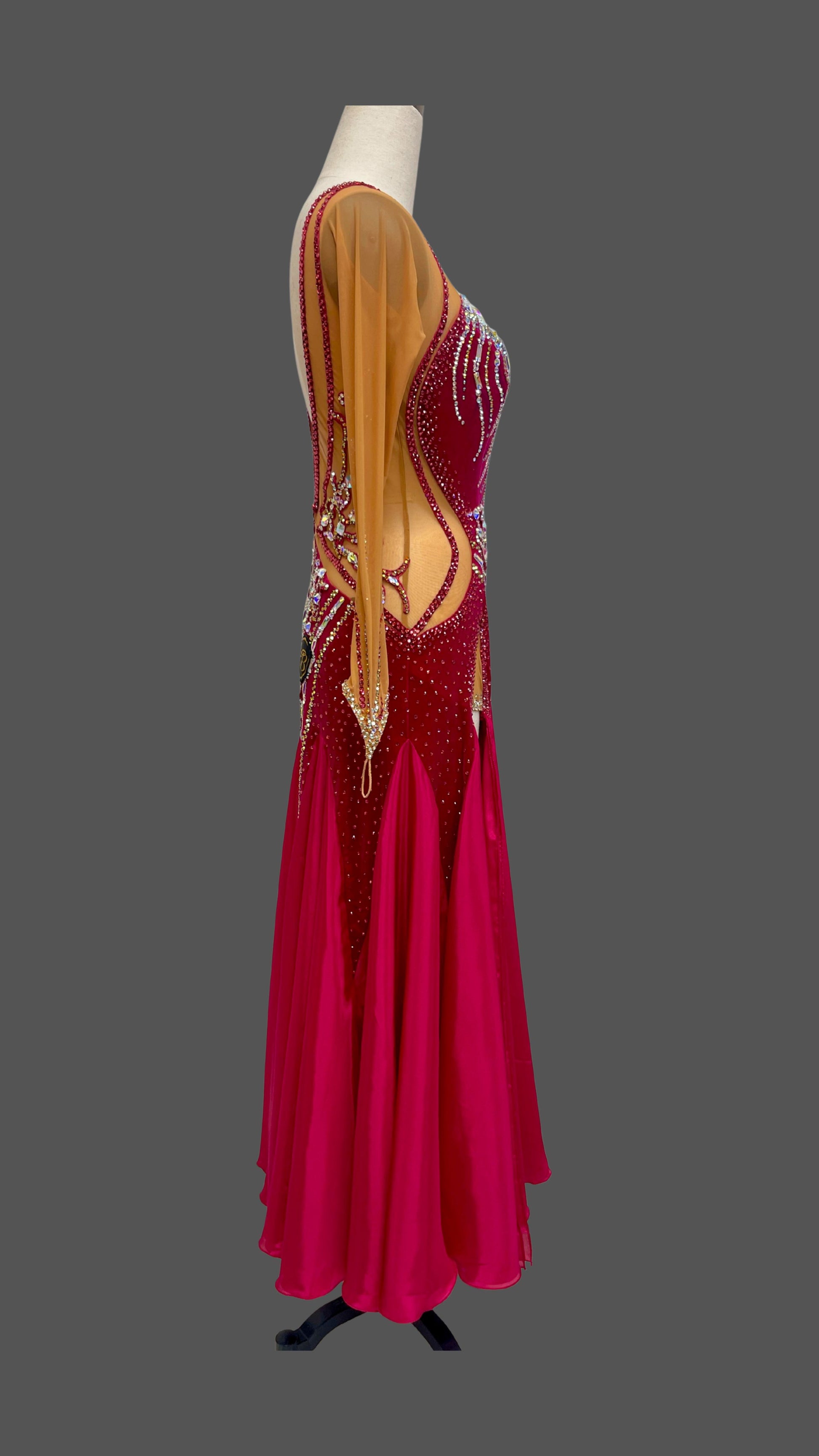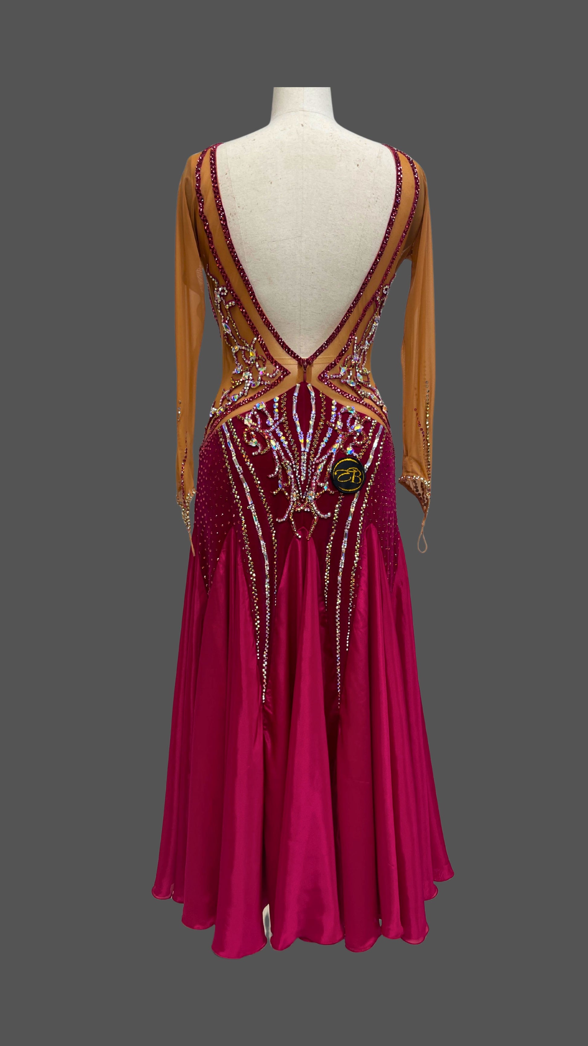 Elegant and Sexy Fushcia Ballroom Dress with Long Sleeves
