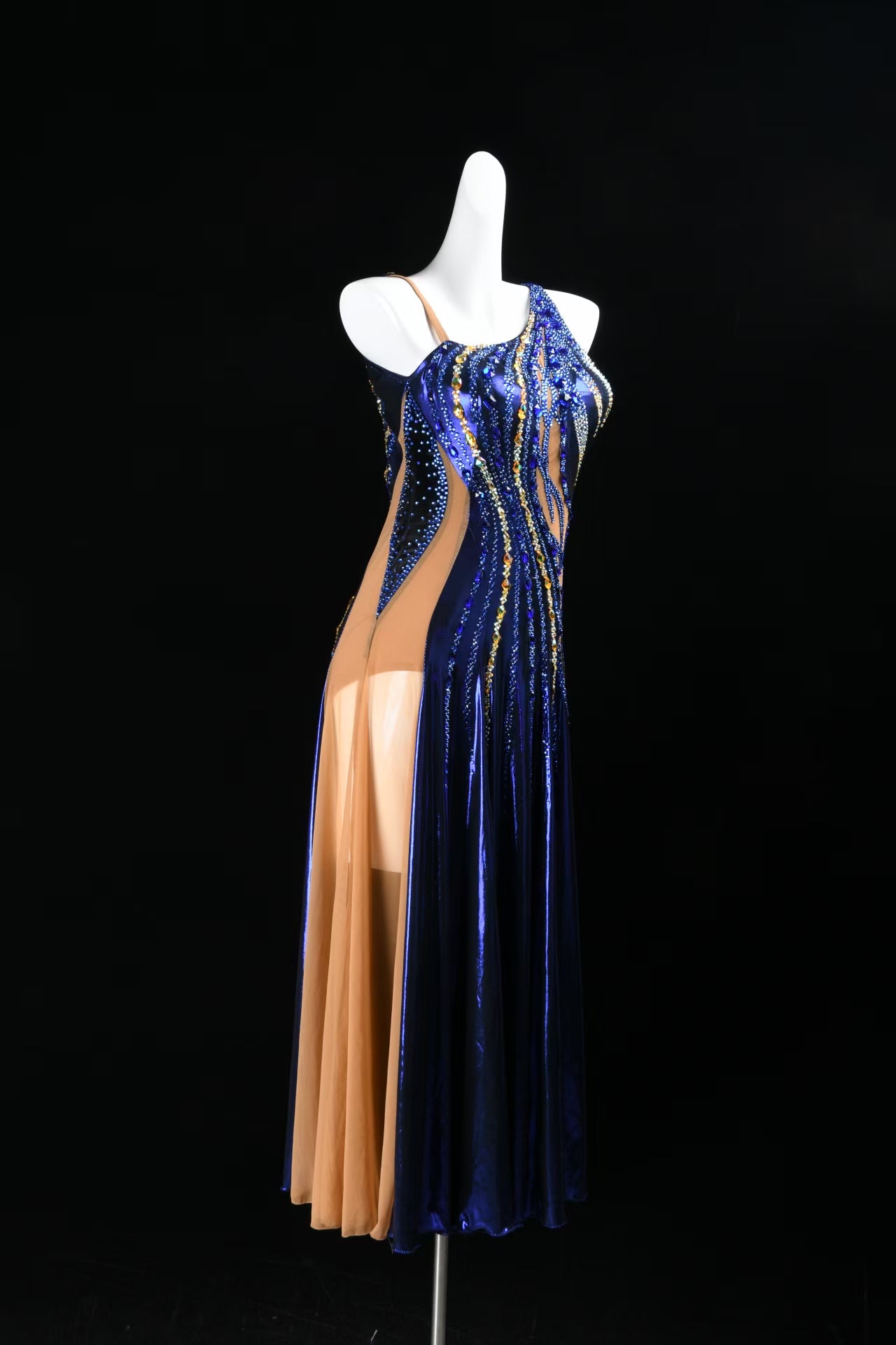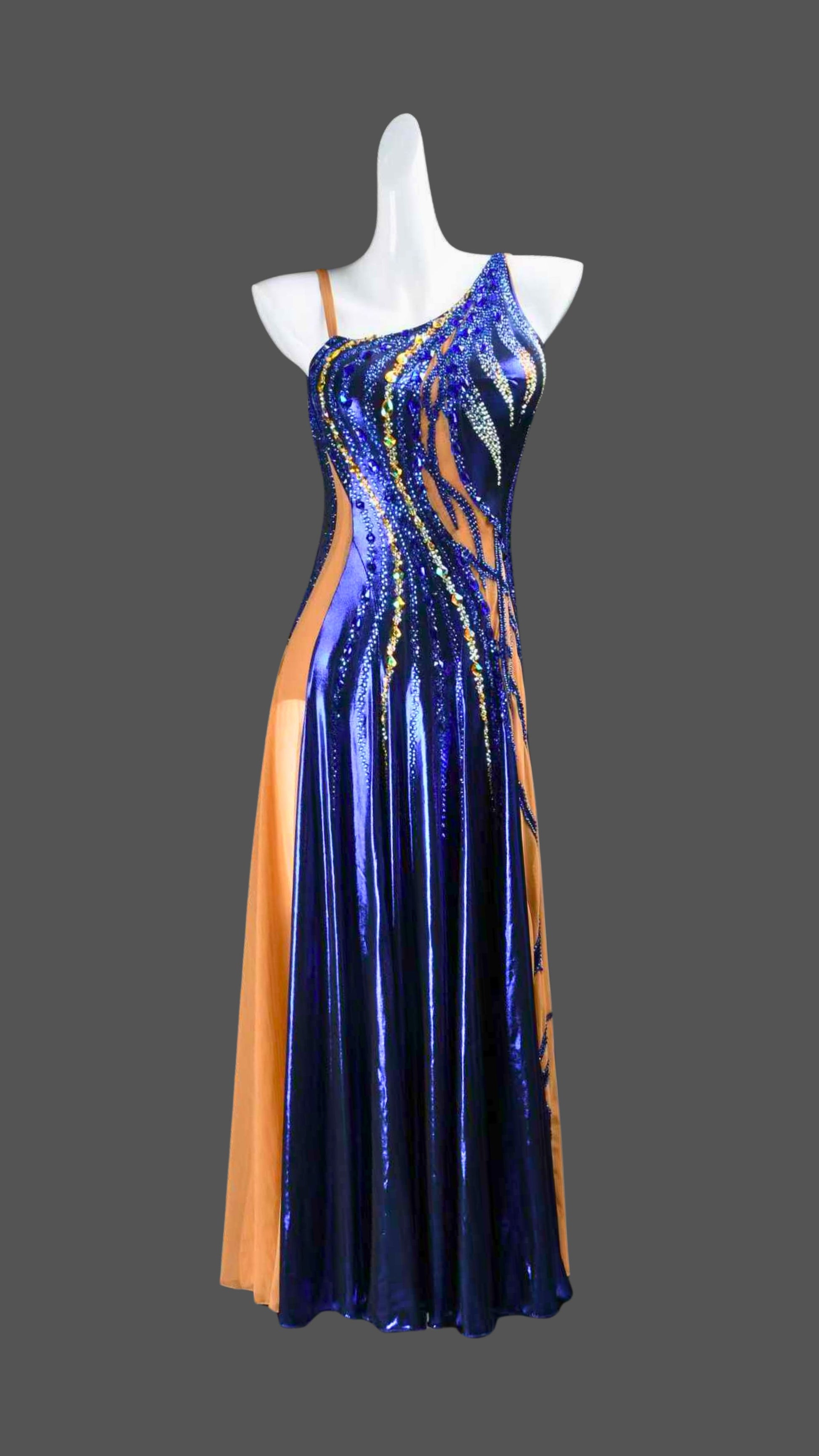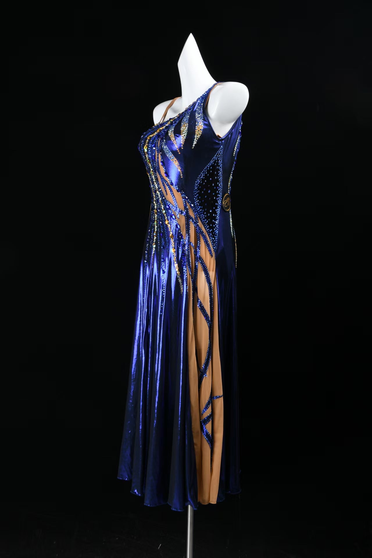 Elegant and Sexy Metallic Navy Blue Ballroom Dress