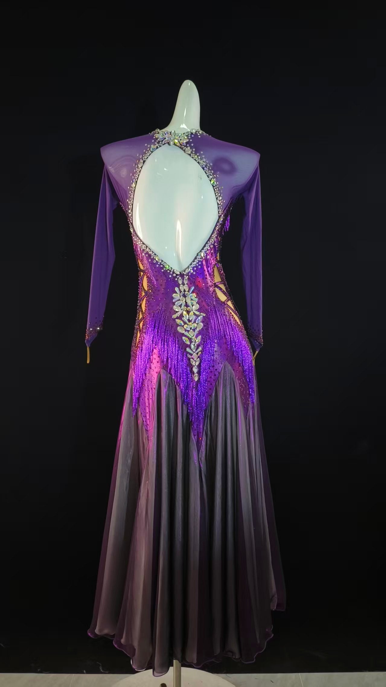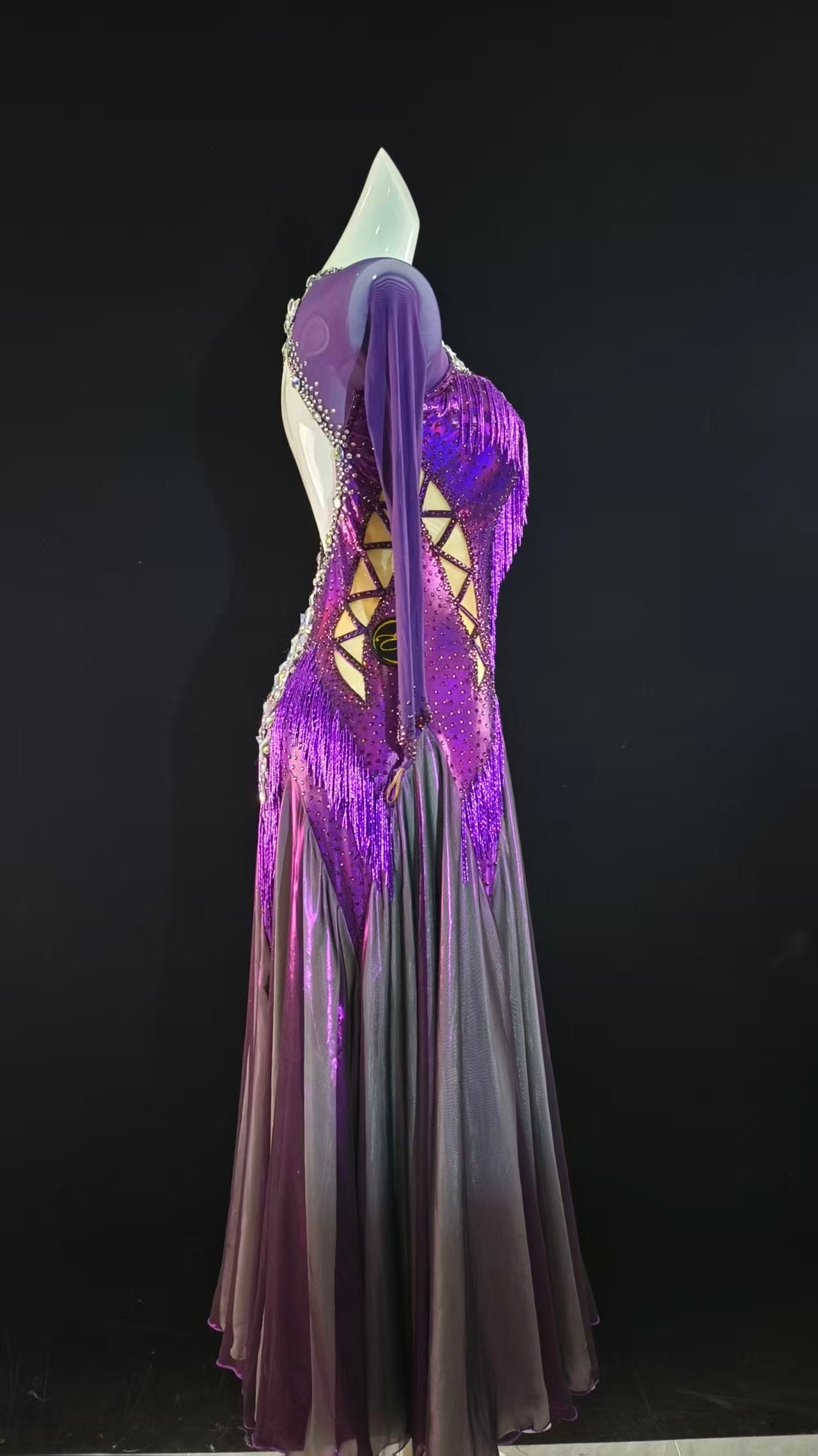 Elegant and Sexy Shiny Purple Ballroom Dress with Sleeves