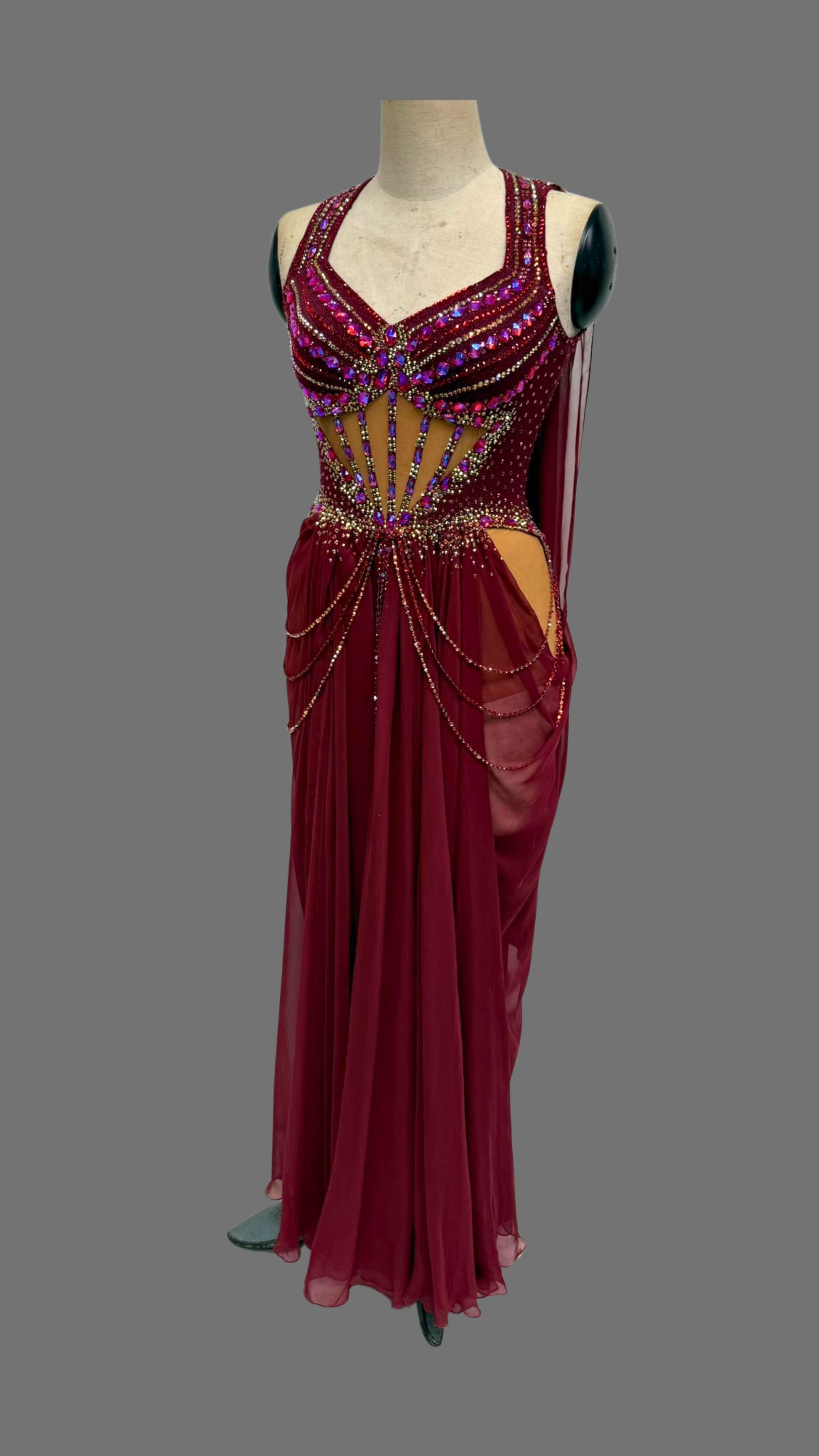 Elegant & Sexy Burgundy Flowey Ballroom Dress